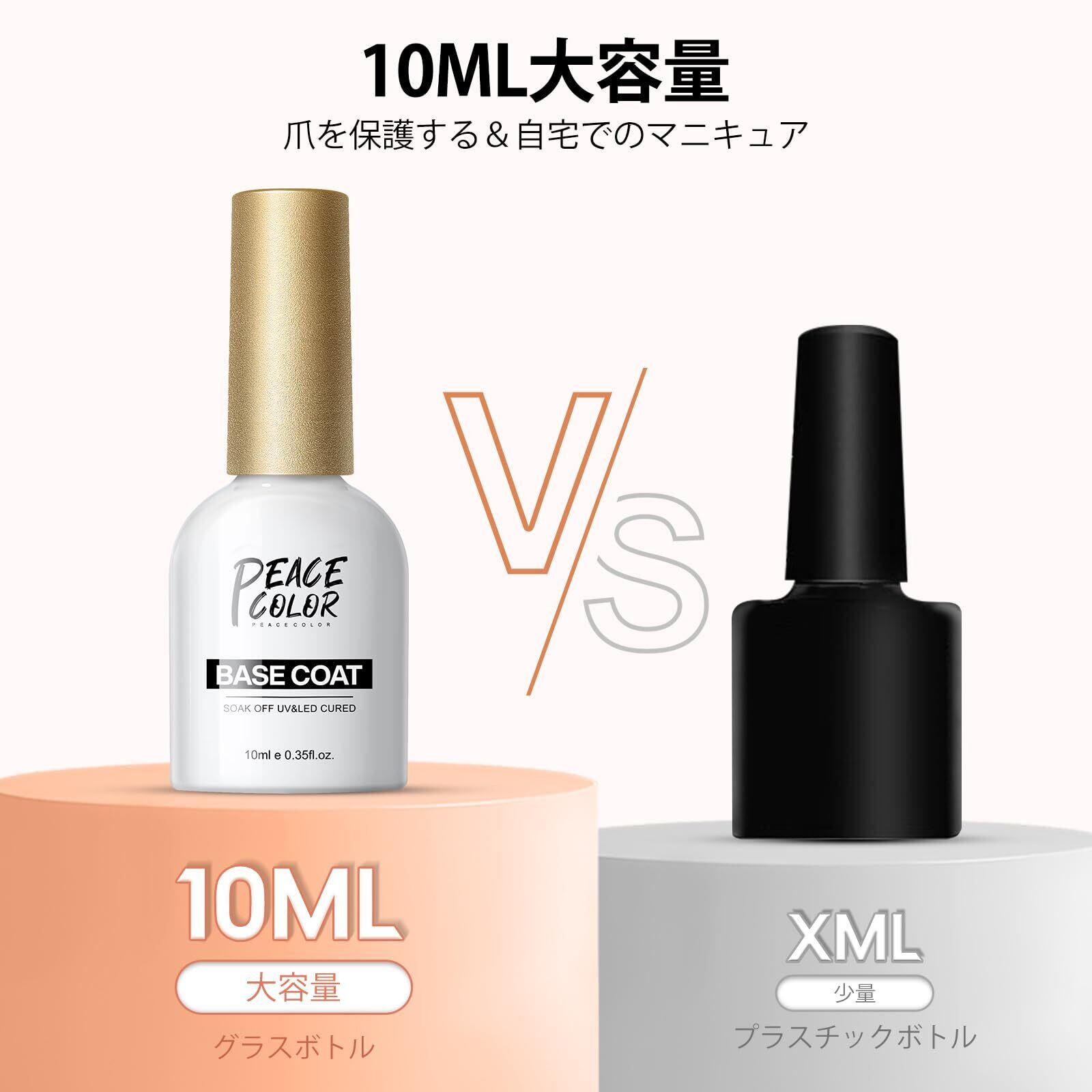 PEACECOLOR ジェルネイル トップコート ベースジェル 10ML*2本 大容量 ノンワイプトップジェル 拭き取り不要 トップジェル ベースコート ネイル ジェルネイル用 長持ち U V/LED対応 初心者&プロ用