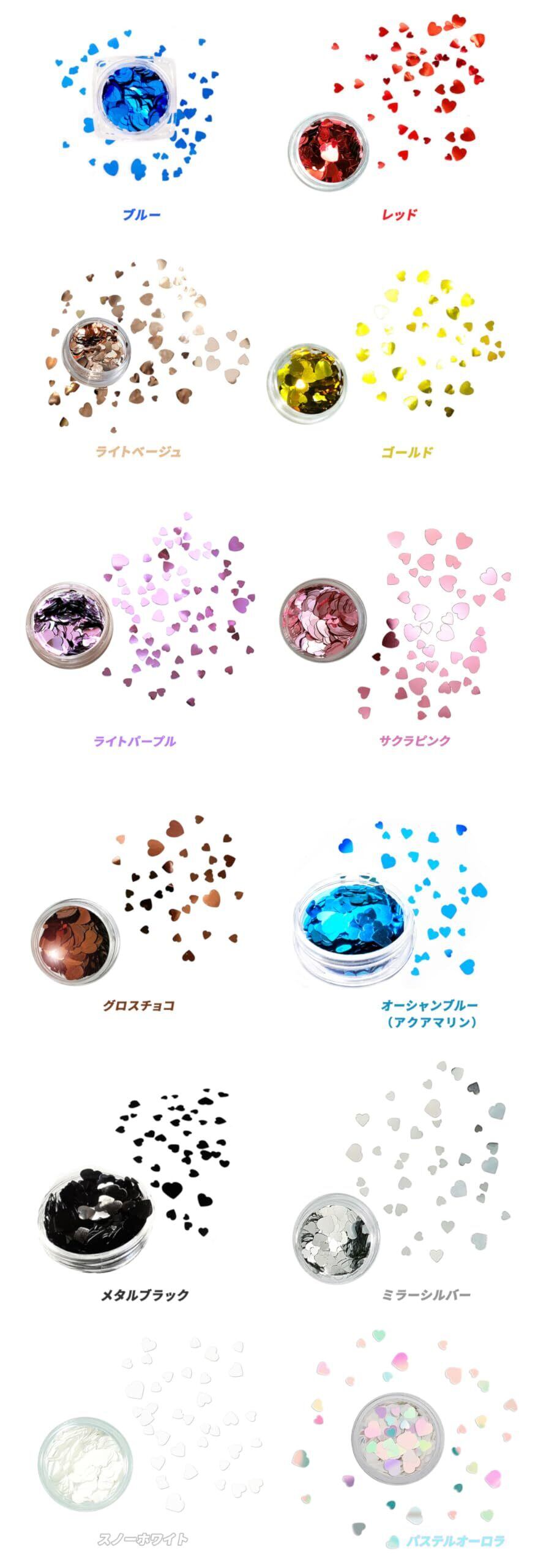 様々なデザインに応用できるハートグリッター。 光が当たる角度によりキラキラ反射してとてもきれいです。
