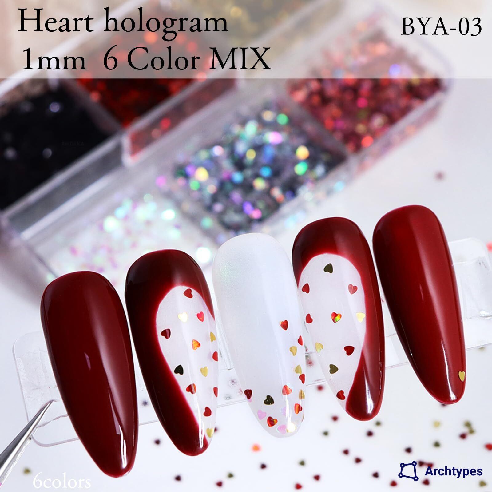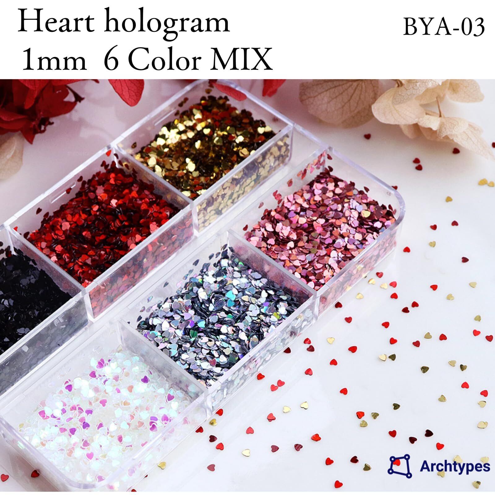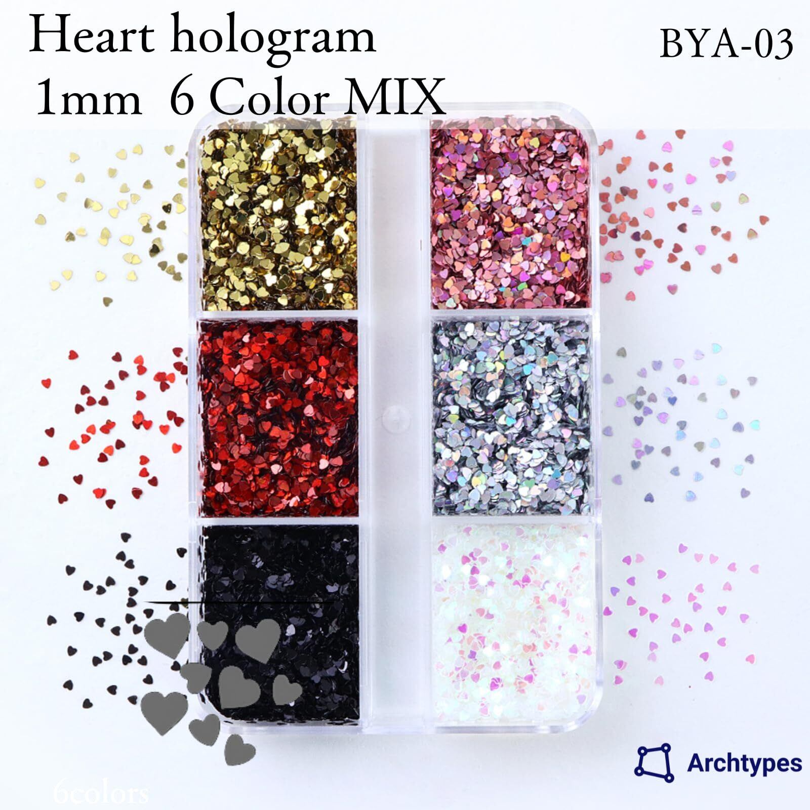 ハート ホロ ネイル ホログラム ハートホロ 1㎜ ネイルパーツ 6色セット (BYA-03)
