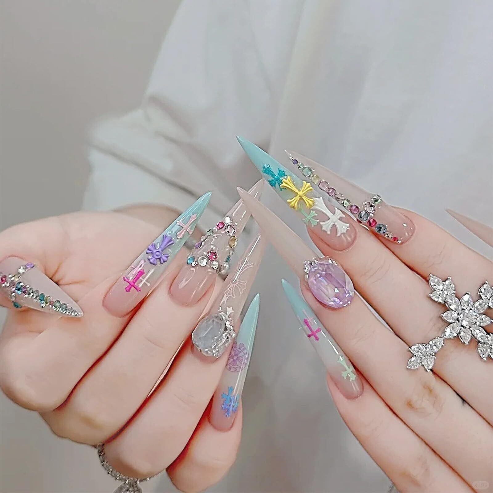 【クロスネイルパーツ】レトロシルバーとカラフルな十字架ネイルパーツを揃っています。異なるデザインで、絶妙で美しく、ネイルのワンポイントにぴったりです。