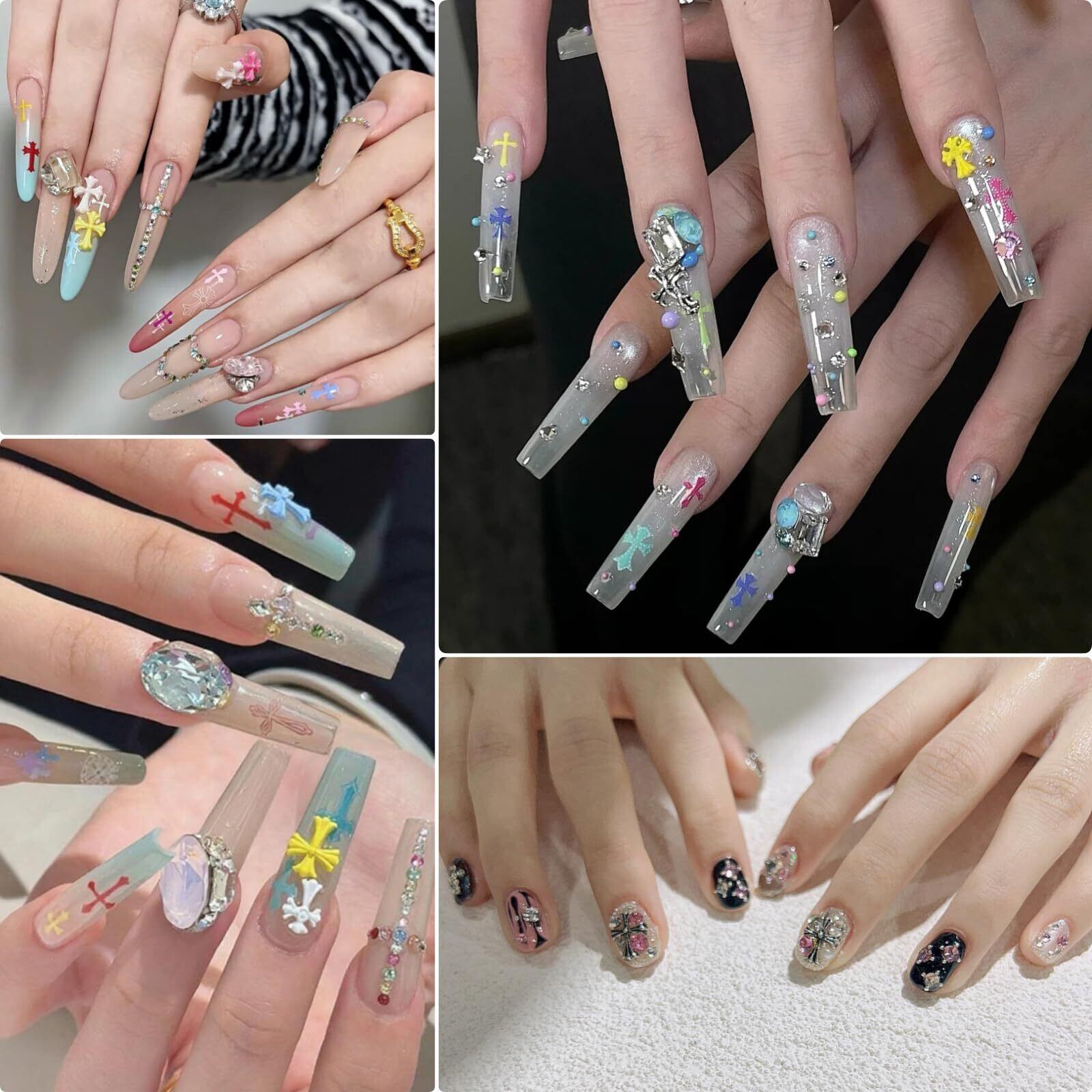 【クロスネイルパーツ】レトロシルバーとカラフルな十字架ネイルパーツを揃っています。異なるデザインで、絶妙で美しく、ネイルのワンポイントにぴったりです。 【素材】樹脂と合金製のネイルパーツは耐久性があり、色褪せにくく、軽くて付け心地が良く、長時間使えます。 【ネイルアートに】大きめのネイルパーツなので、立体的で存在感があります。指先に置くだけで、3d効果のネイルができます。自宅でも綺麗なネイルを楽しみいただけます。 【幅広い用途】ネイルパーツとして使うのはもちろん、レジンパーツ、ハンドメイド、スマホカバーの飾りなどにご利用いただけます。 【パッケージ】ネイルパーツ2ケース入り。