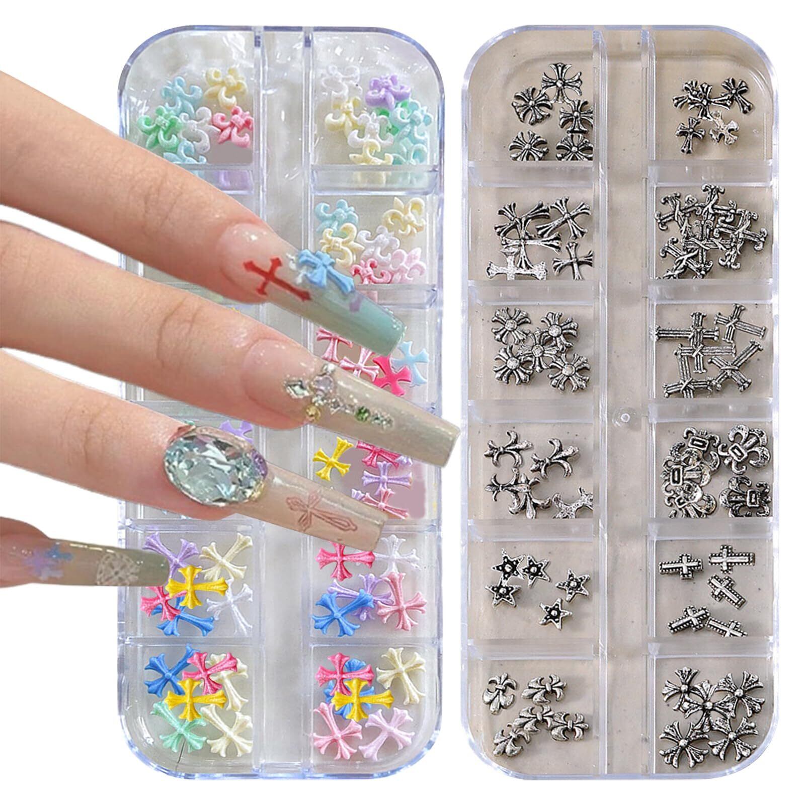 【特価商品】ネイルパーツ 十字架 2ケース 3D クロス ネイルパーツ メタルパーツ スタッズ カラフル レトロ シルバー パンク ネイルアート デコパーツ DIY アクセサリー レジン 封入パーツ 手芸素材