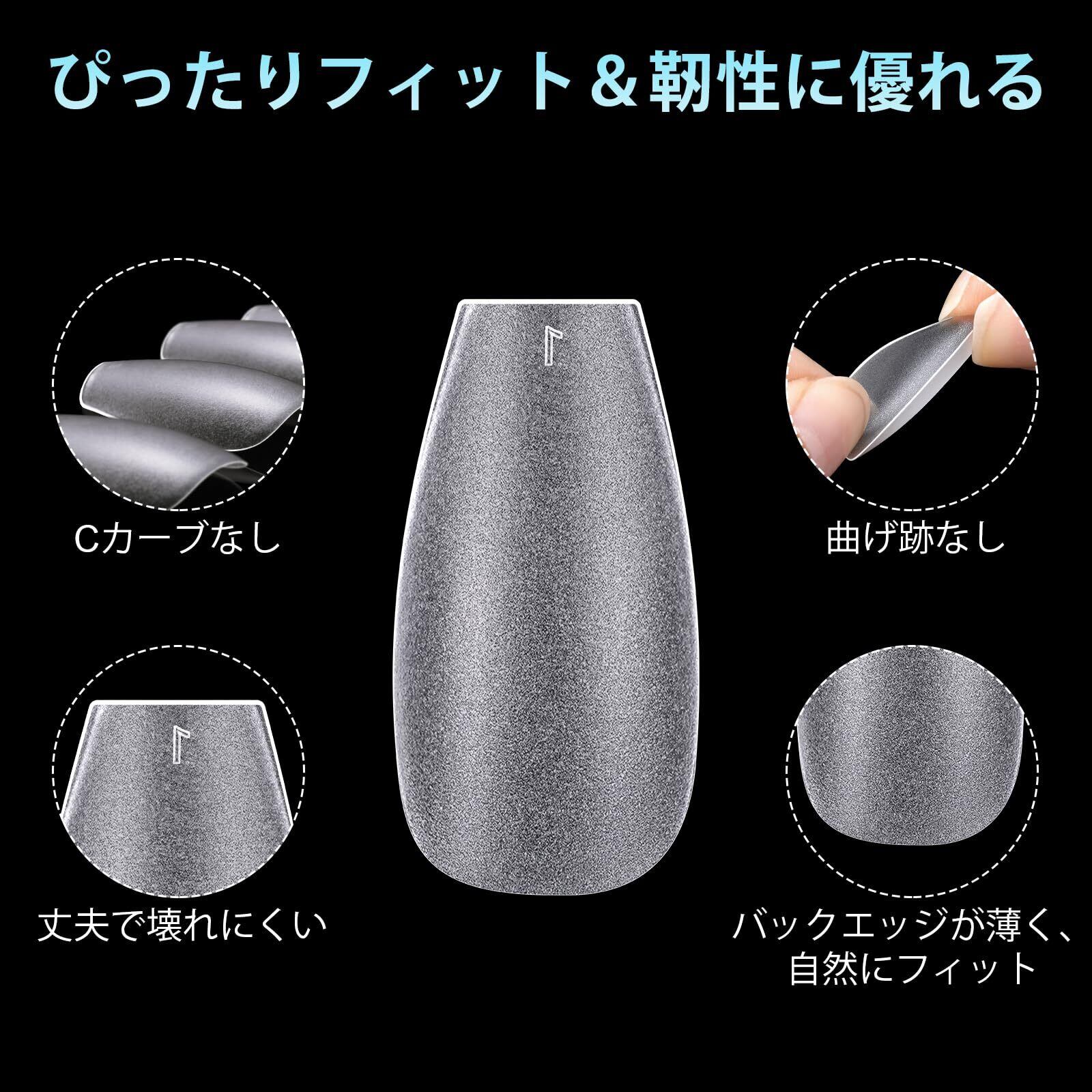【豊かなセット】12サイズがある、各サイズ 20 枚、合計240枚を含む。 また、指先には「0~11」の数字が刻まれているので、自分の爪に合ったチップが簡単に見つかります。バレリーナの形は、とても綺麗で理想的なネイルチップを作ることが出来ます。