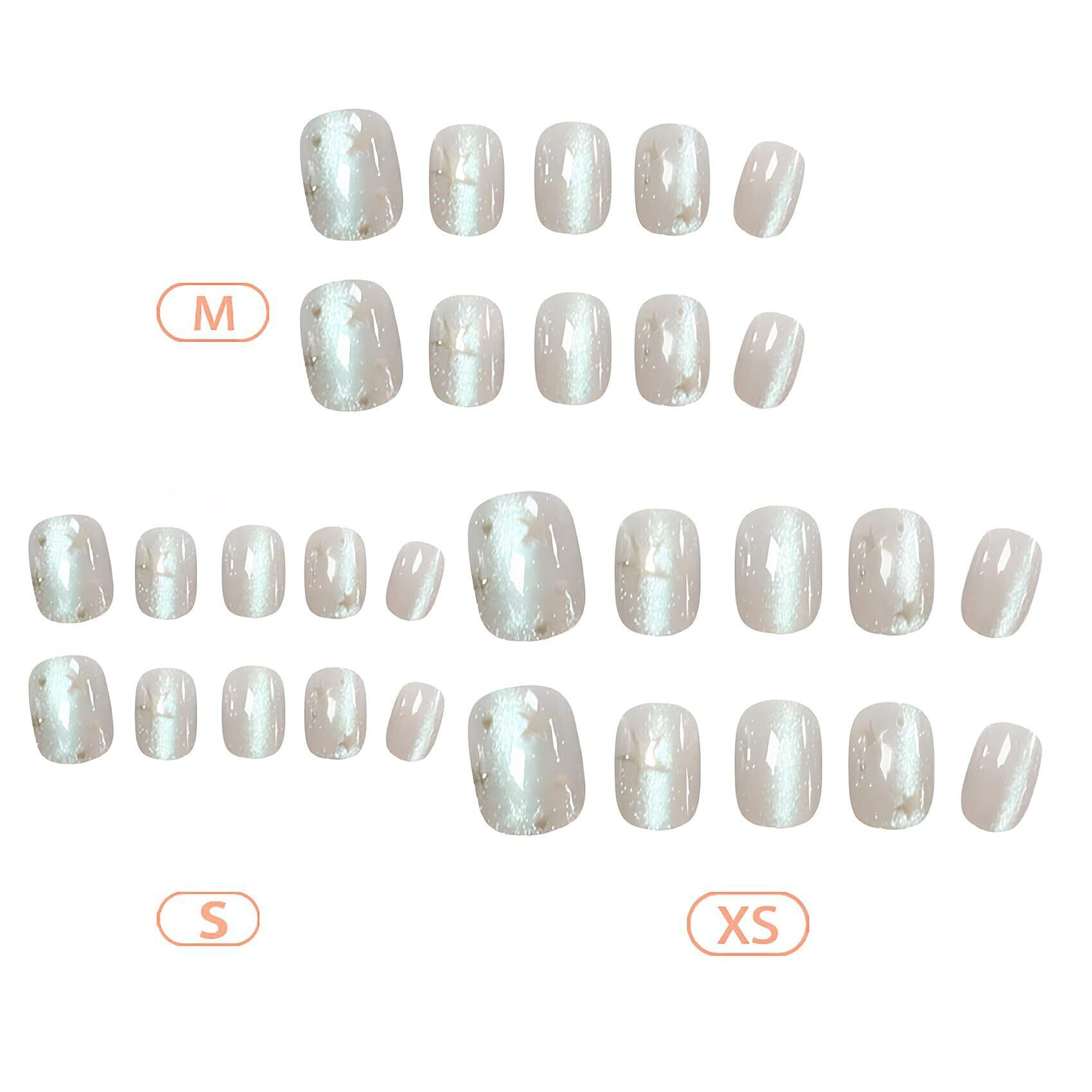 [ALLEVG]ネイルチップ 30枚入マグネットタイプ ショート 春夏 付け爪 猫目石 人気 和風 かわいい シンプル おしゃれ 成人式 入学式 卒業式 結婚式 パーティー 花嫁ネイル (シルバースターストーン)