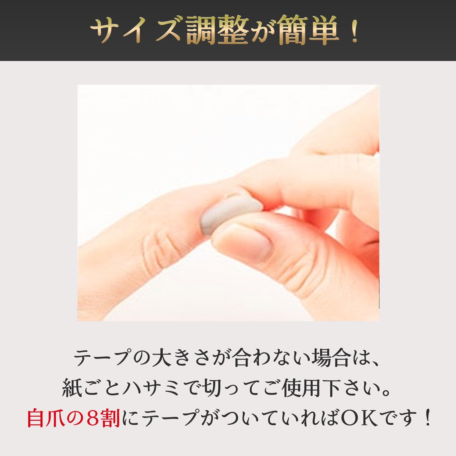 ②なるべく粘着面に指が触れないようにテープを爪に貼ります。