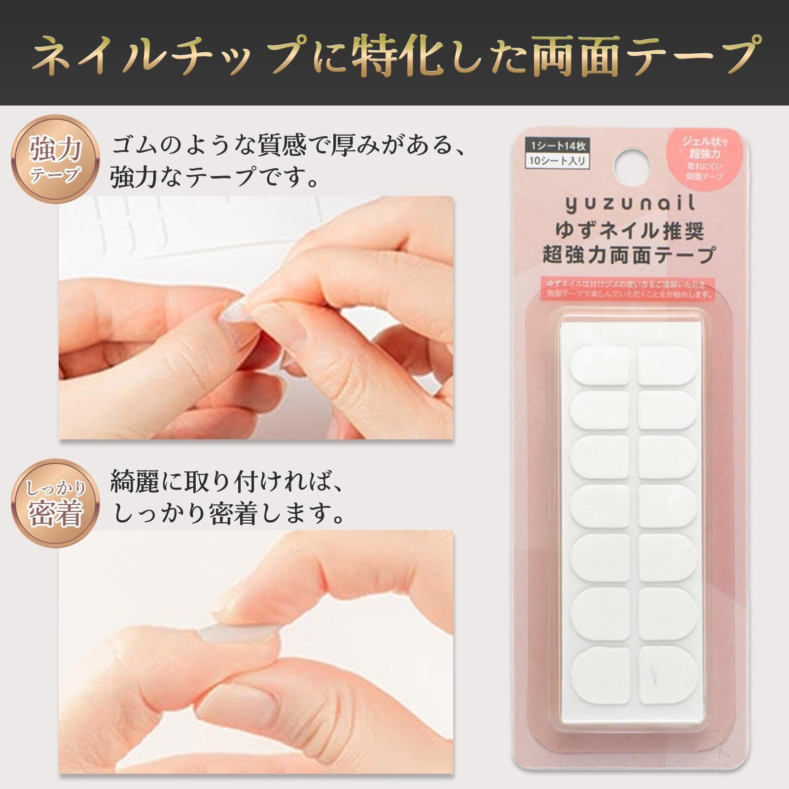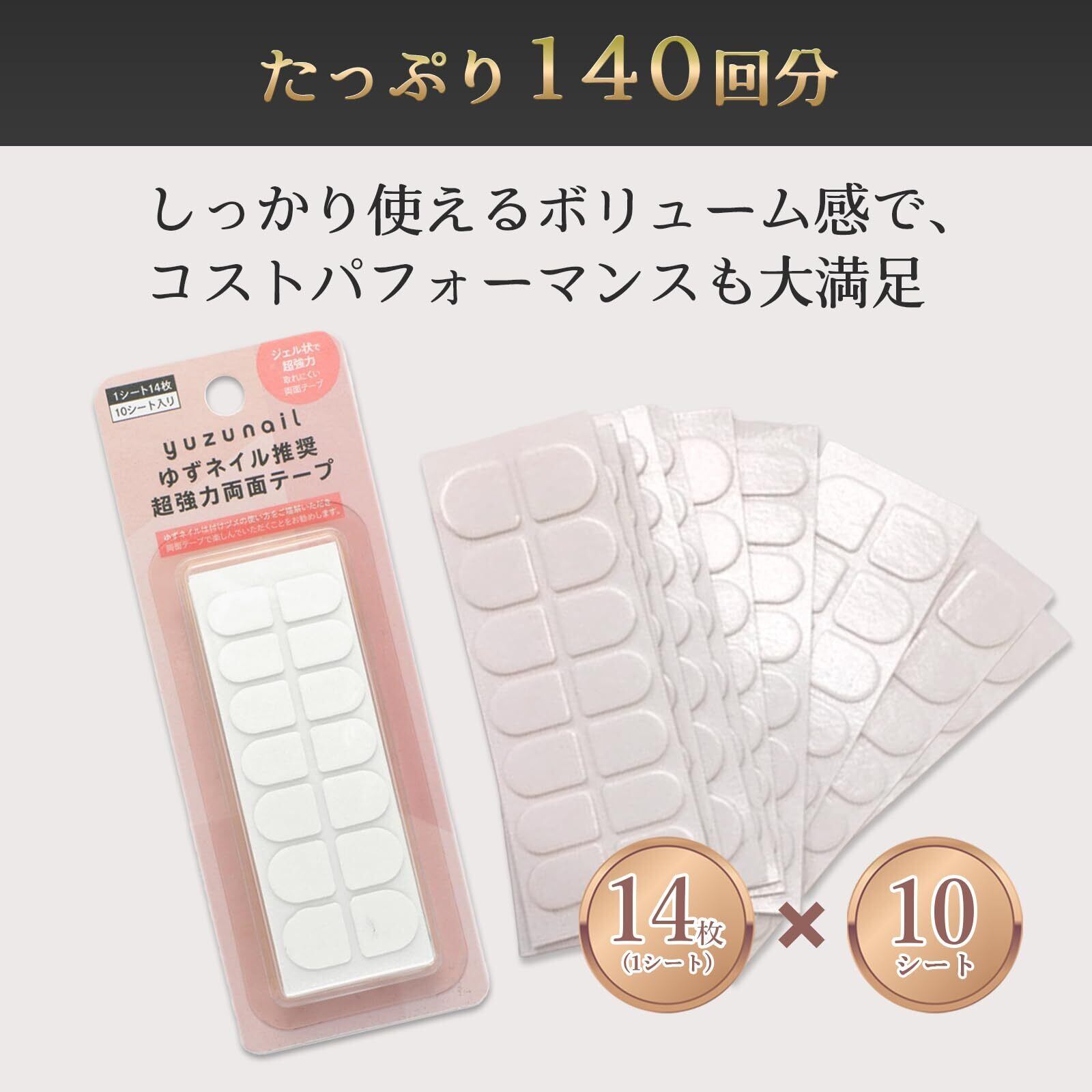 【日本製】ゆずネイル 強力 ネイルチップ シール テープ 両面テープ 接着シール 貼るだけ (140枚入)