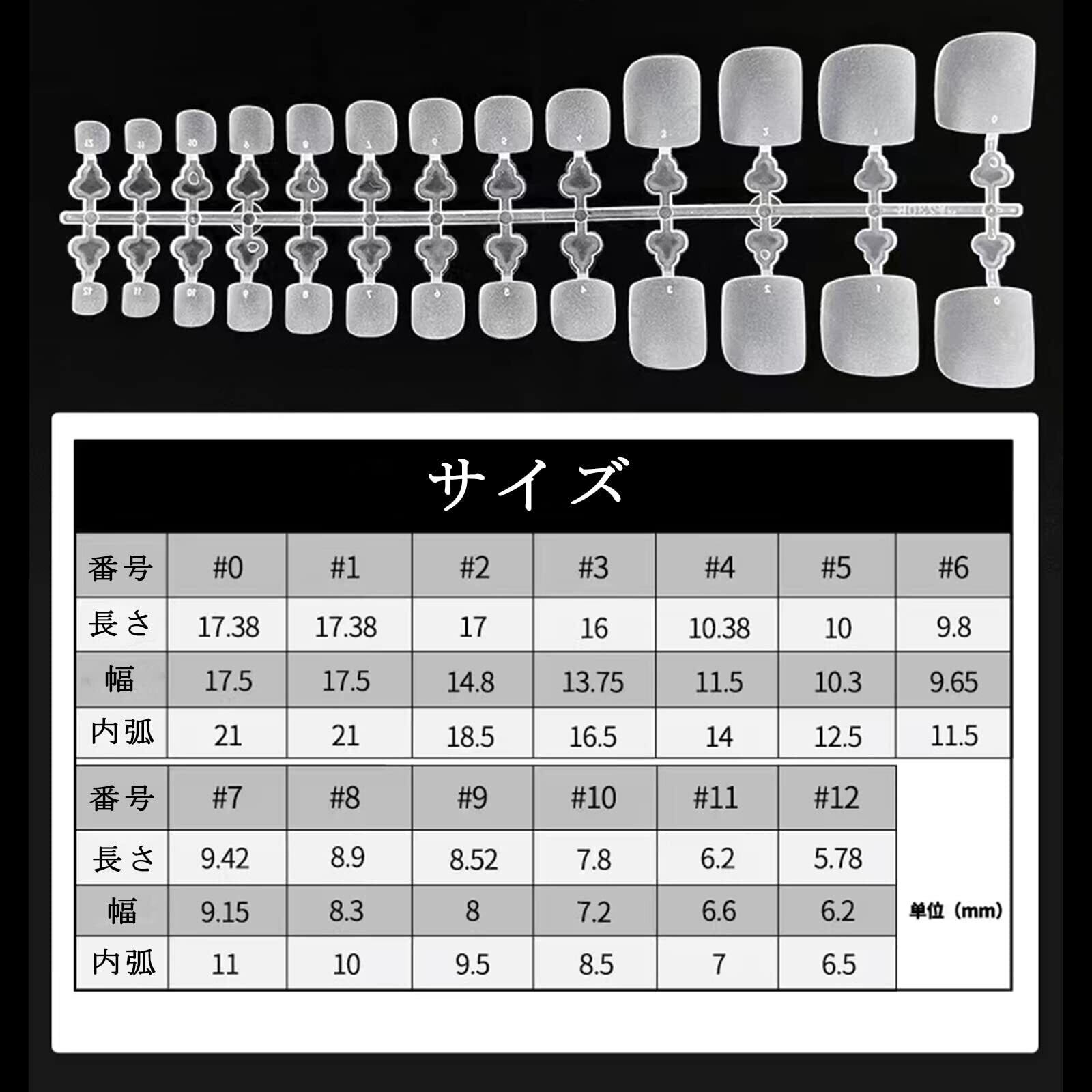 【豊かなセット】13サイズがある、各サイズ 20 枚、合計260枚を含む。約20回使用できます。 また、指先には「0~12」の数字が刻まれているので、自分の爪に合ったチップが簡単に見つかります。