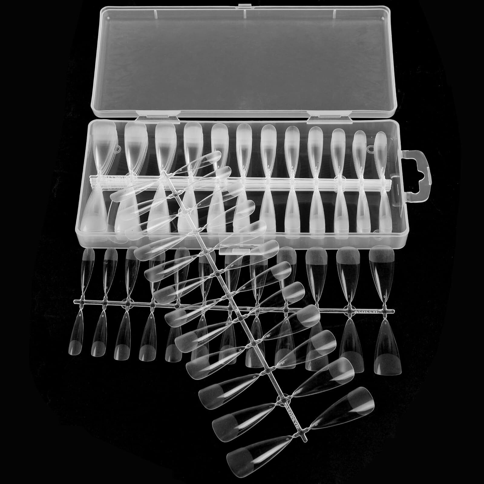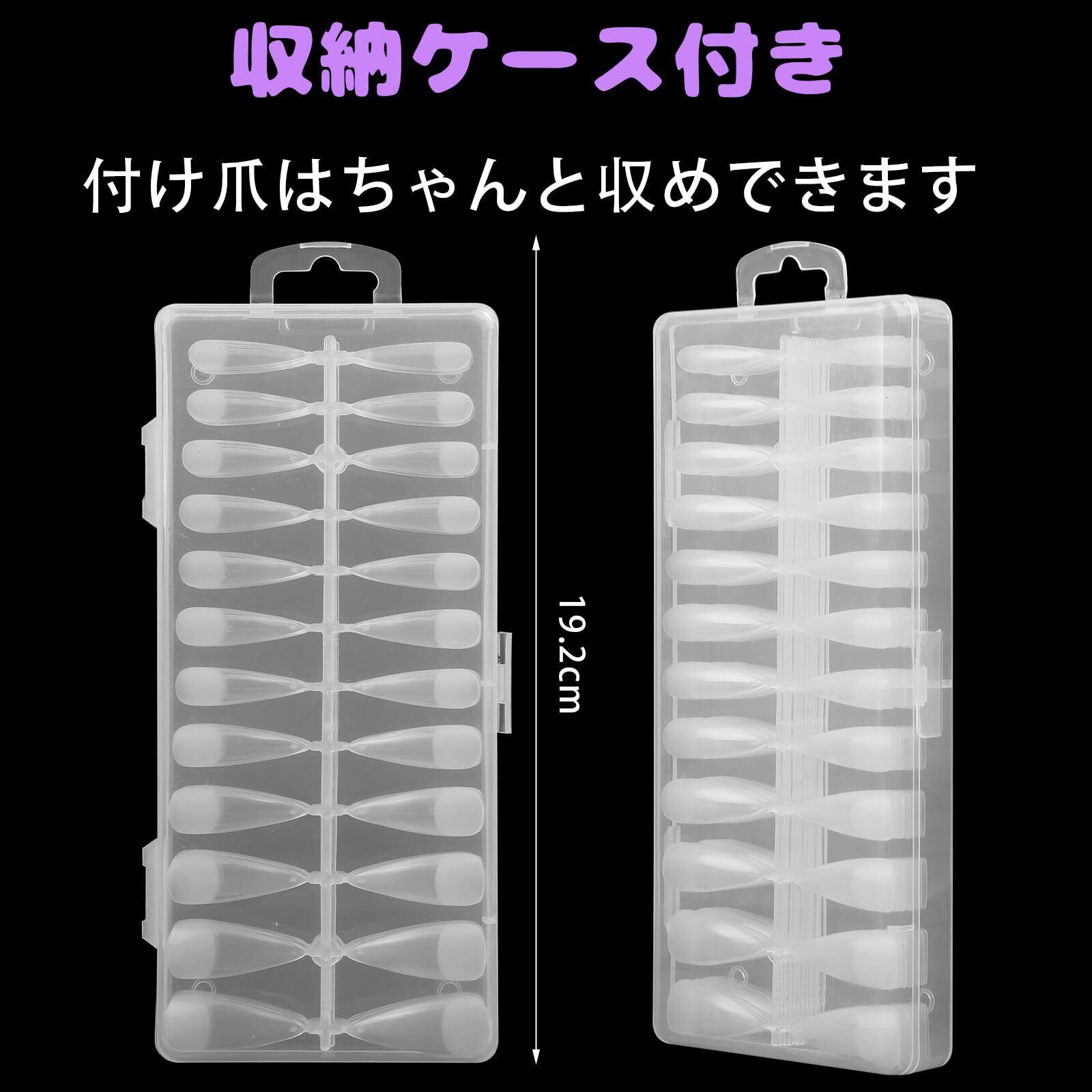 使いやすい:収納ケース付きなので、付け爪はちゃんと収めできます。一枚ずつのつけ爪はパレットでつながっていて、つけ爪先裏にはサイズマークが刻まれているので、自分の合わせるつけ爪簡単に見つかります。【Tips】サイズマークにトップコートを塗るとトップコートと一体化してサイズマークが消えます。