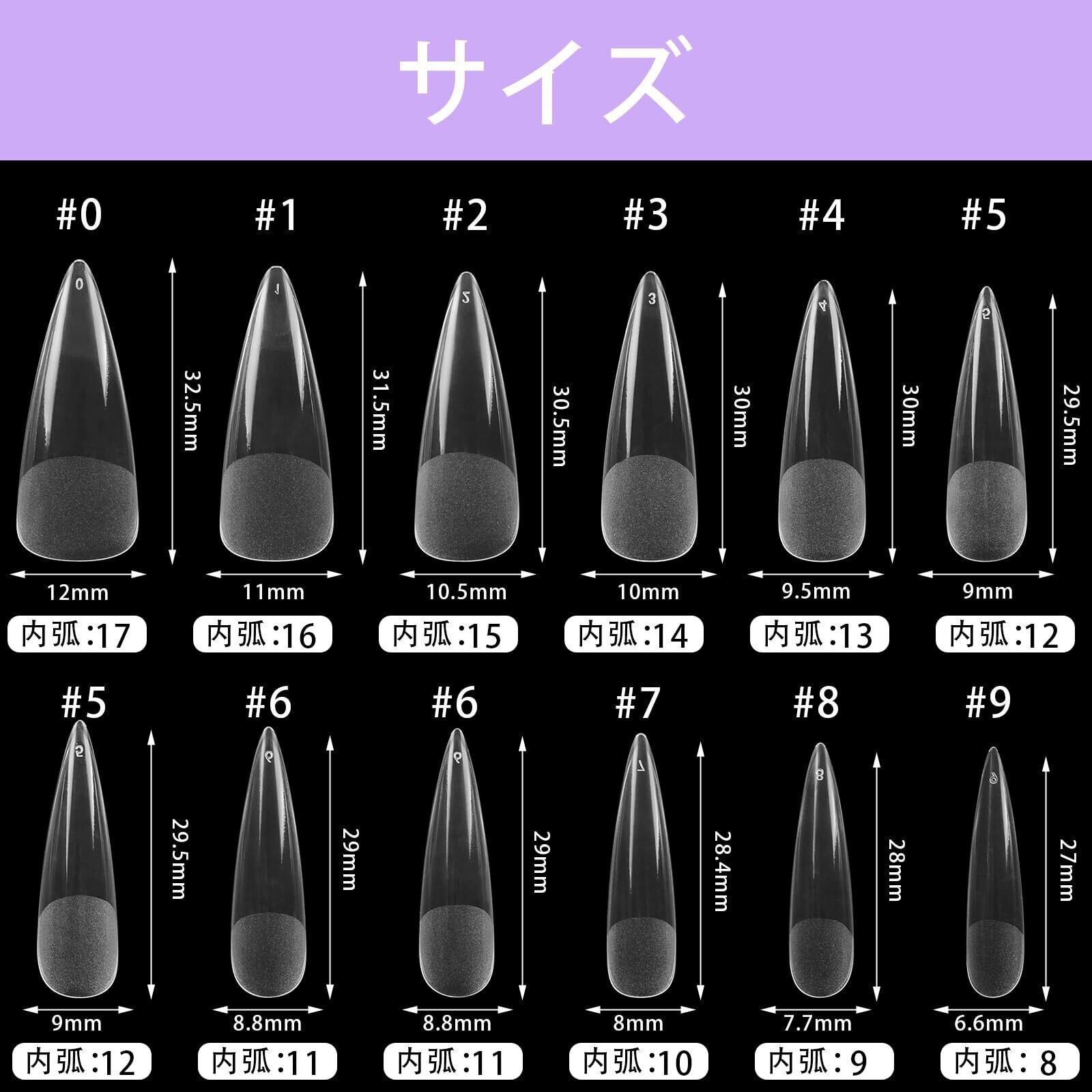 【材質】アクリル 【サイズ】10サイズ 【数量】240PCS(12ピースx2両手x10パレット)サンディング加工済み ご注意: 異臭があるかもしれませんので、収納ケースを開けて、1日かけて太陽があって風が通る場所に置いて散臭がしてください。