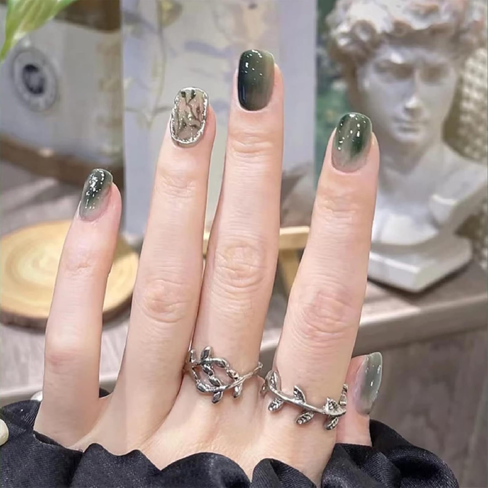 ネイルチップ ショート 緑 24枚入 ネイル用品 ラウンドチップ 人気 和風 おしゃれ 花嫁ネイル 短め 光沢 つけ爪 穿戴甲片 成人式 入学式 卒業式 結婚式 パーティー 両面テープ ネイル シール ウッドスティック ネイルファイル付き