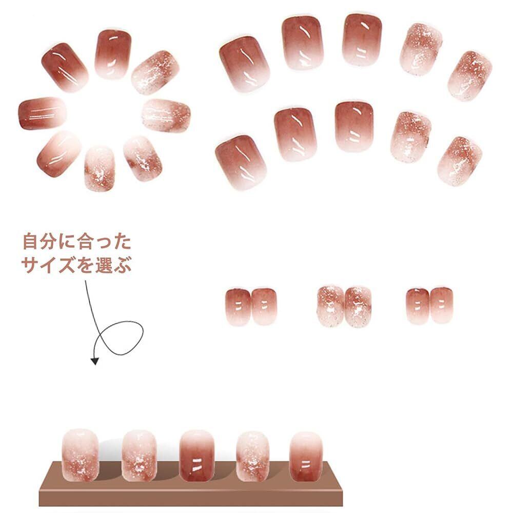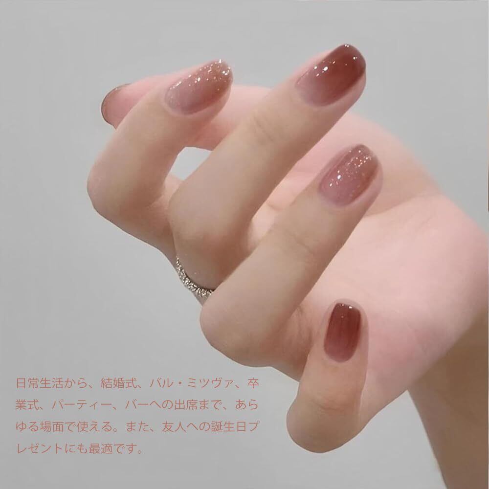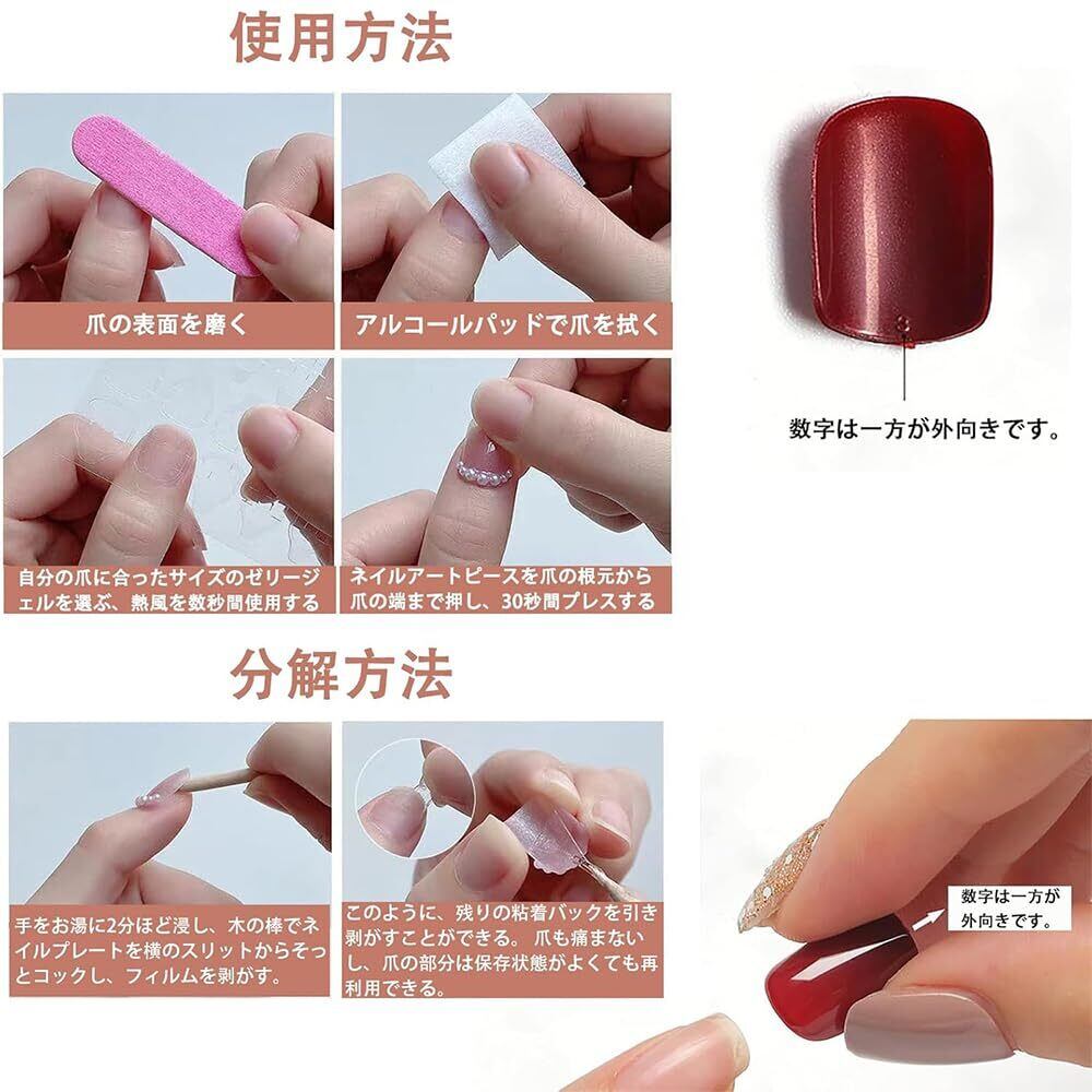 【リッチセット内容】この商品には24枚のセットが含まれており、予備用のネイルチップも一緒に提供されます。さらに、両面テープや爪やすり、木の棒もセットに含まれています。到着後すぐに使用できるので、お客様に便利です。さらに、両面テープに2秒間熱風をあてると、さらにしっかりと貼り付けることができます。
