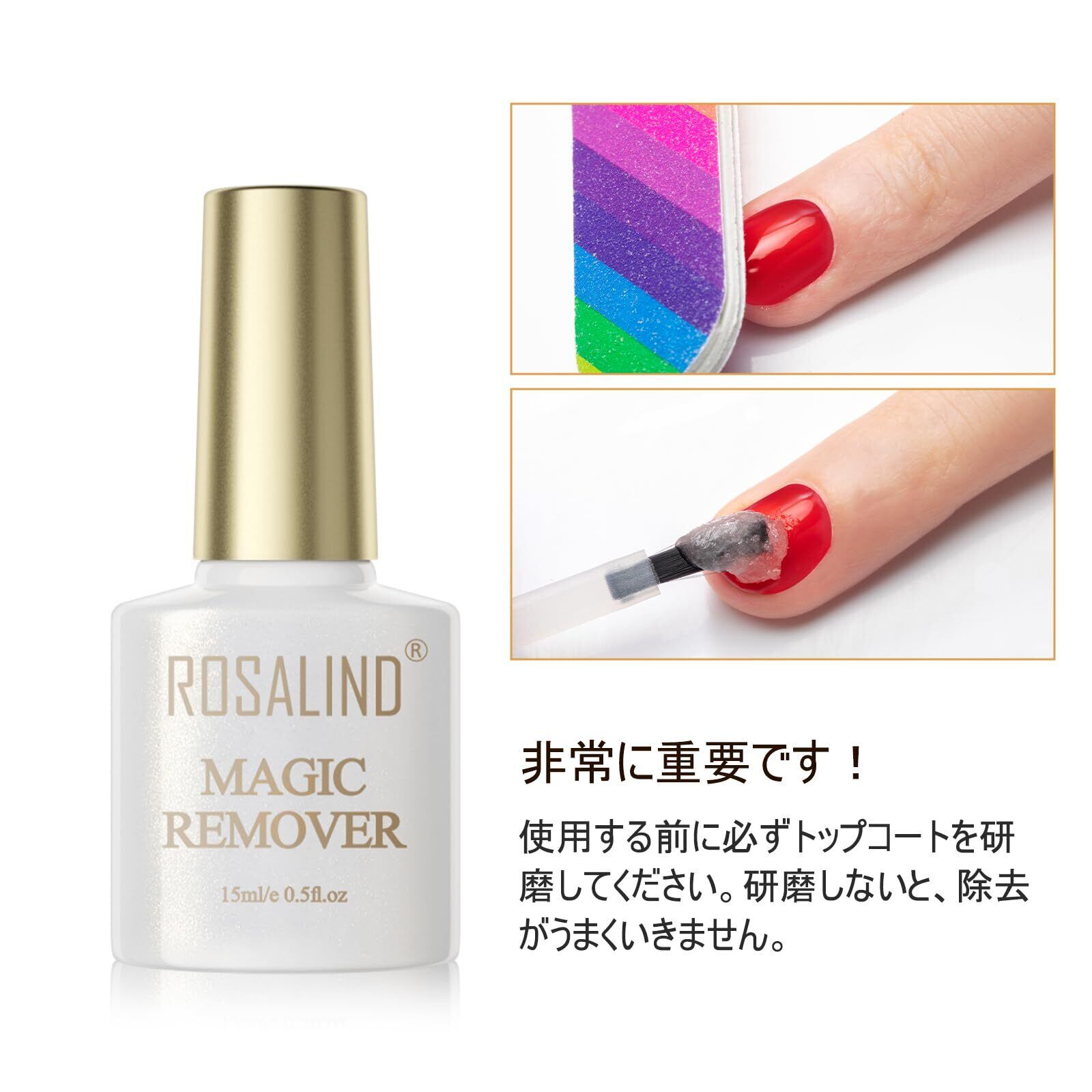 【数量限定】ROSALIND ジェルネイル リムーバー 除光液 15ml 2ボトルマジック ジェルネイル オフ ネイルリムーバー 簡単・迅速 ピールオフジェル セルフネイル ジェルネイルオフ