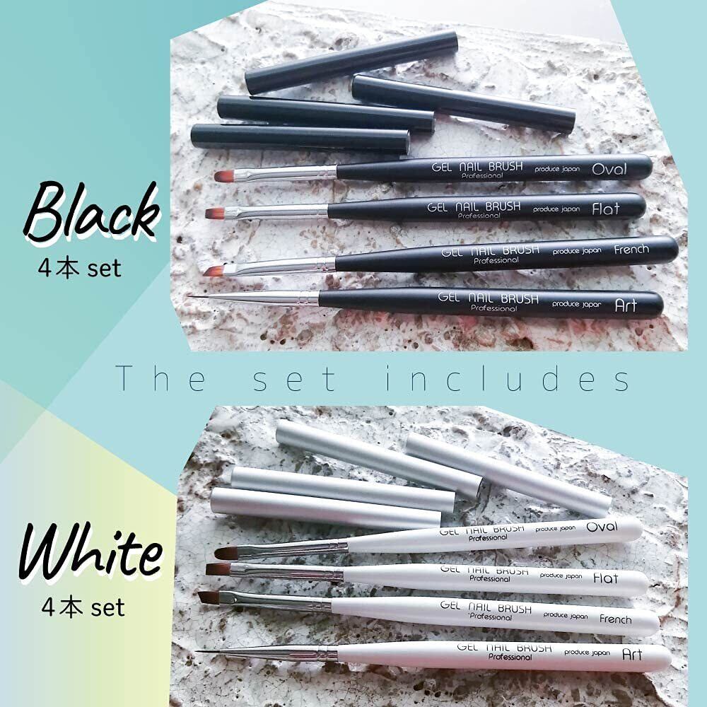 【ジェルネイル用 ブラシ】カラー:ブラック(4本セット)筆:オーバル/フレンチ/フラット/アート8mm ※キャップ付き サイズ:約14cm(±0.3cm) ※ブラシの種類により持ち手の長さが異なる場合がございます。