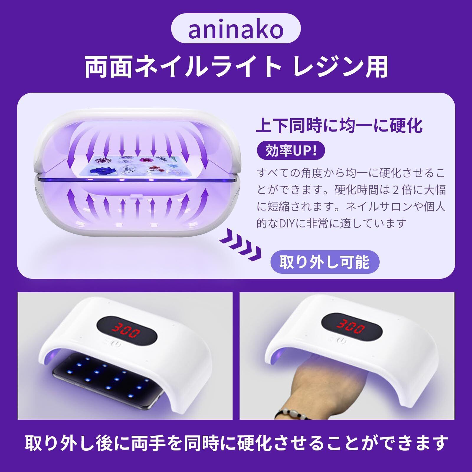 【新春セール】aninako ネイルライト 両面 LED & UV 硬化ライト 大型 36W 長時間設定(120s/180s/300s) 3階段タイマー ジェルネイル レジン トップコート 対応 セルフネイル 両面UVレジンランプ 携帯 速乾 プロ用 初心者用 レジン硬化 店舗用