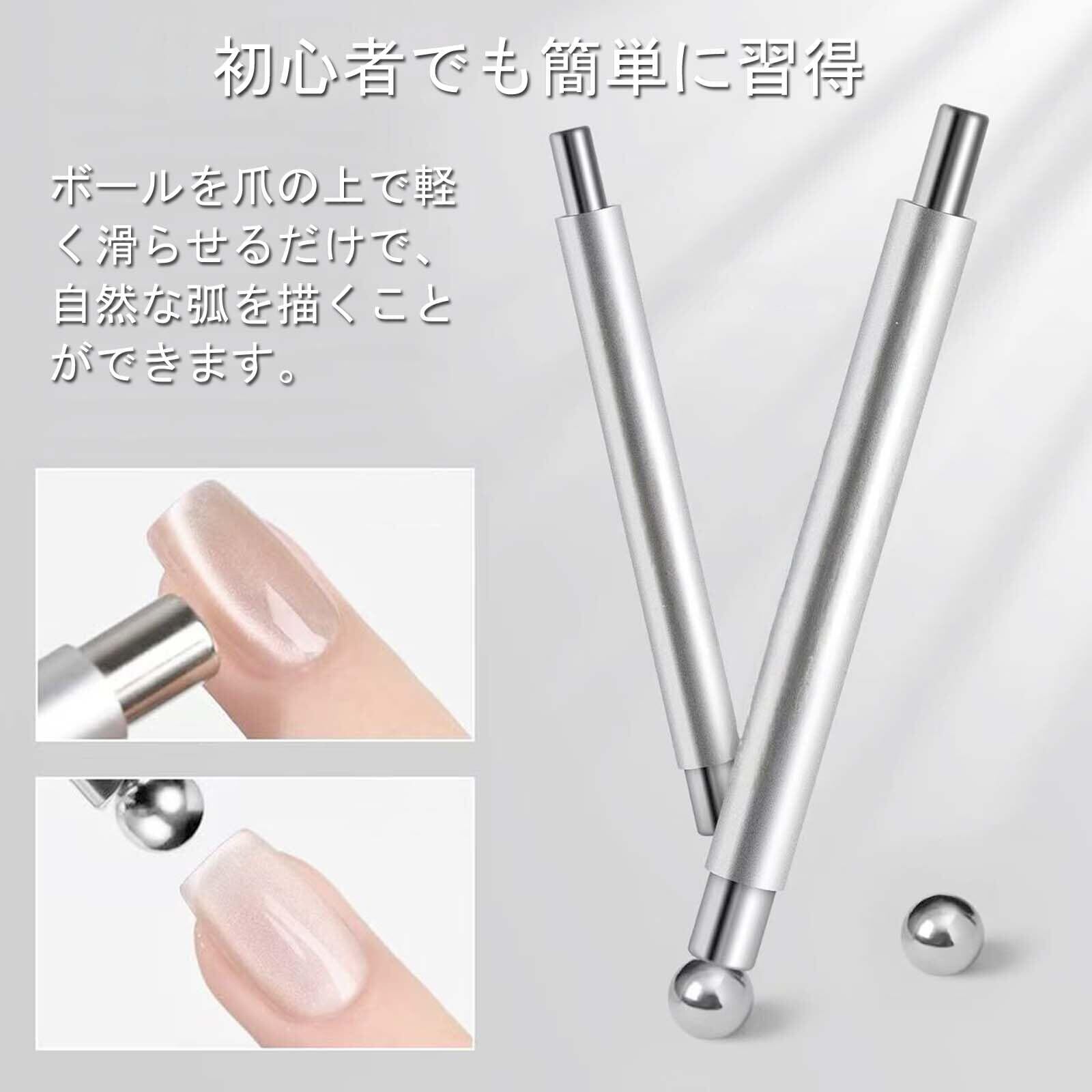 ネイルマグネット 磁石 3WAY 2つボール付き 滑り止めグリップ付き 強力 初心者向け キャッツアイ ジェルネイル用 セルフネイルアートツール シルバー