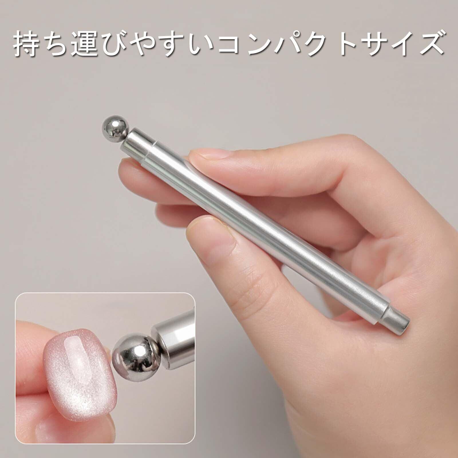 【人気商品】ネイルマグネット 磁石 3WAY 2つボール付き 滑り止めグリップ付き 強力 初心者向け キャッツアイ ジェルネイル用 セルフネイルアートツール シルバー