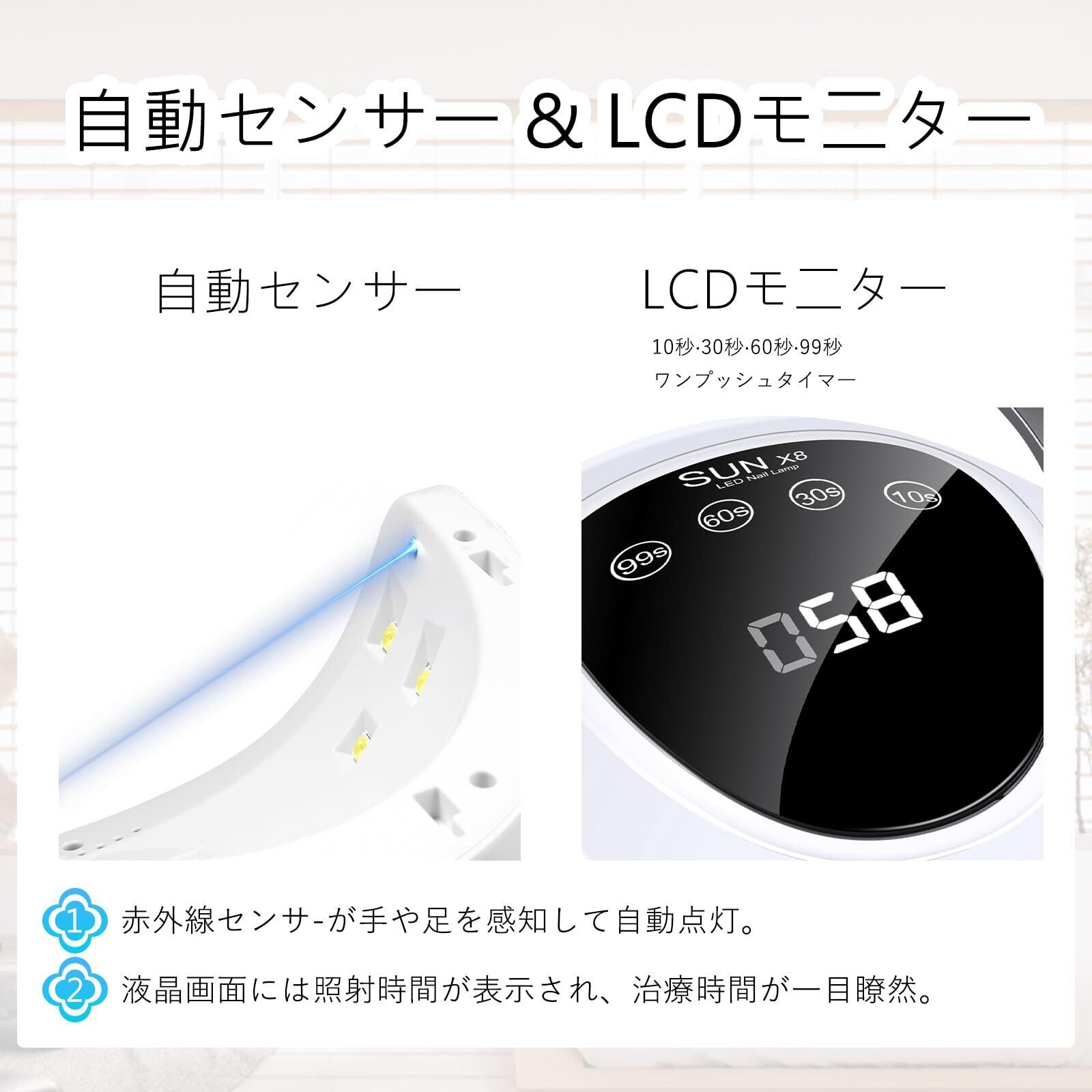 ジェルネイルライト UV/LED ネイルドライヤー コンパクト ネイルランプ 人感センサー 自動点灯 4段階タイマー 低ヒートモード レジン対応 セルフネイル 初心者 家庭用