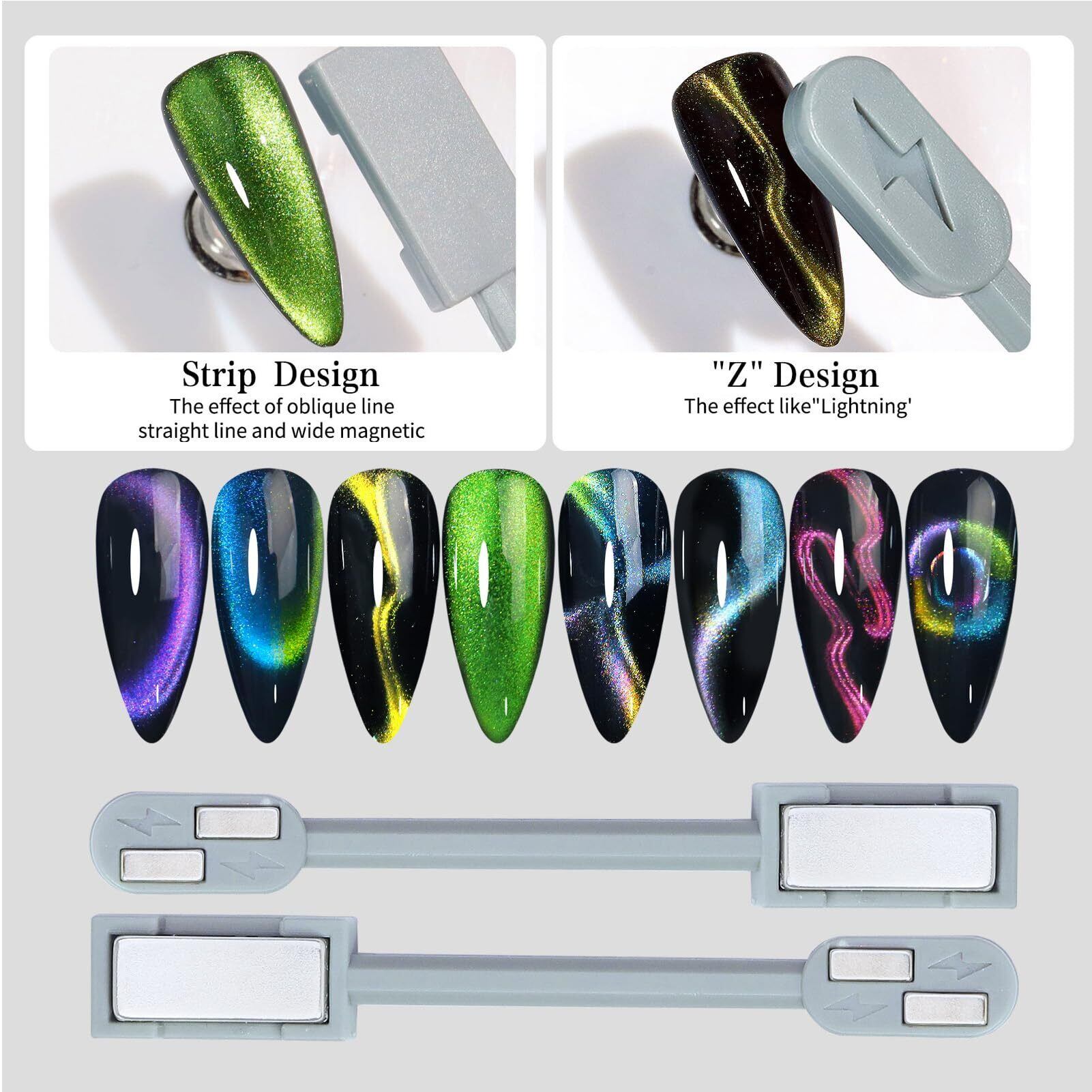 多用途ツールセット:これらのマグネットストリップは様々な形状で、様々なキャットアイ効果を作成できます。あなたの創造性を解き放ち、美しいネイルデザインを作成できるように設計されています。個性的なネイルアートを作成する自由と喜びを体験してください。同ブランドのキャットアイジェルと併用するとさらに効果的です!