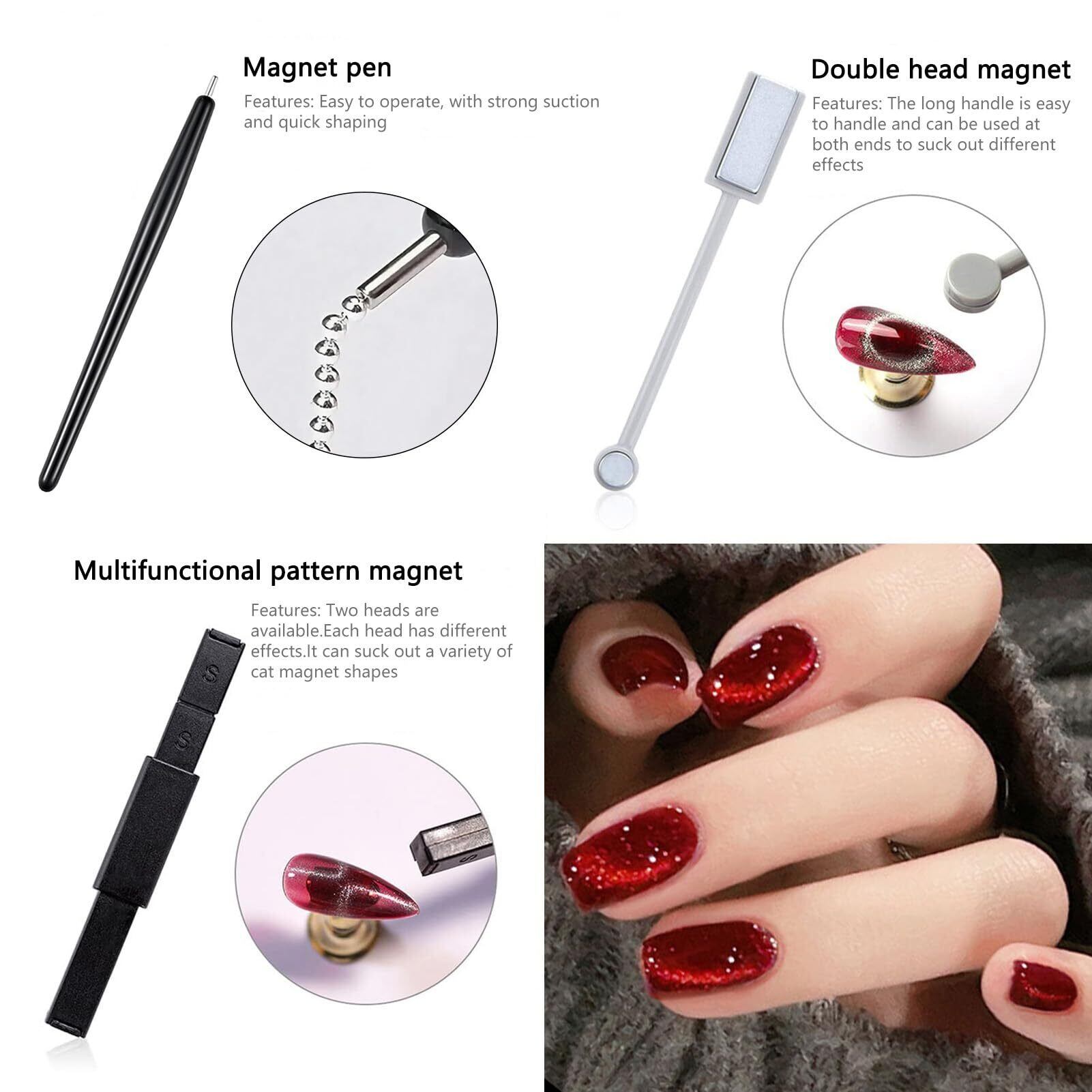 BORN PRETTY 15ピースマグネットセット、キャッツアイマグネットツール、3Dキャッツアイ効果付きマグネットペン、DIYネイルアートツール