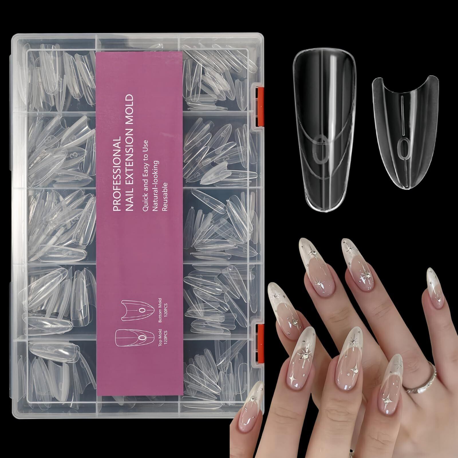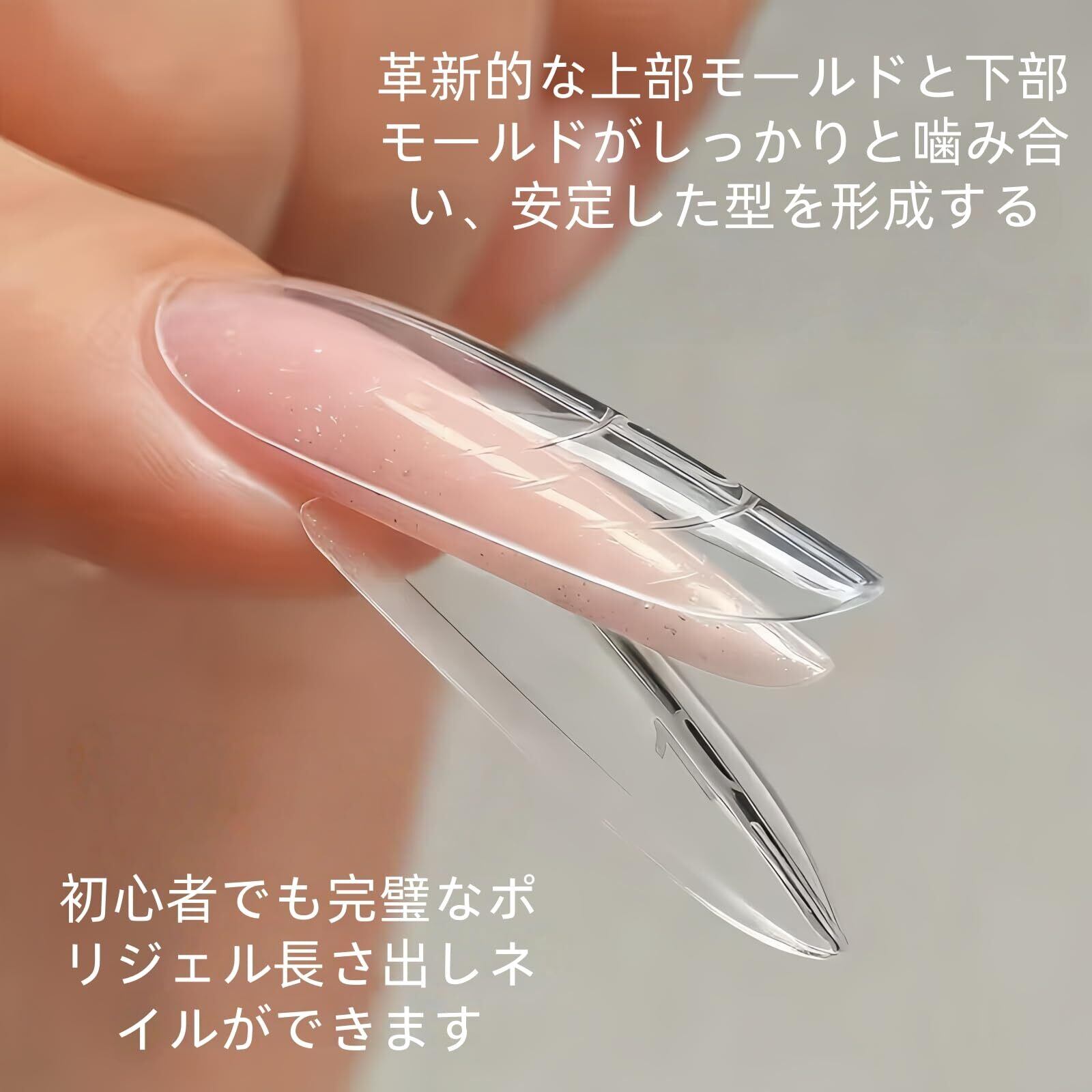 【サンドイッチデザイン】革新的な上部モールドと下部モールドがしっかりと噛み合い、安定した型を形成するため、初心者でも完璧な形、左右対称、そして構造的に完璧なポリジェル長さ出しネイルを作ることができます。