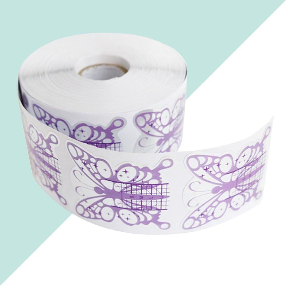 UKCOCO ネイルフォーム 500枚 長さ出し シート バタフライ型 パープル スカルプチュア ガイド ジェルネイル アクリル ポリジェル 練習 検定 プロ用 大容量 ロール 使い捨て