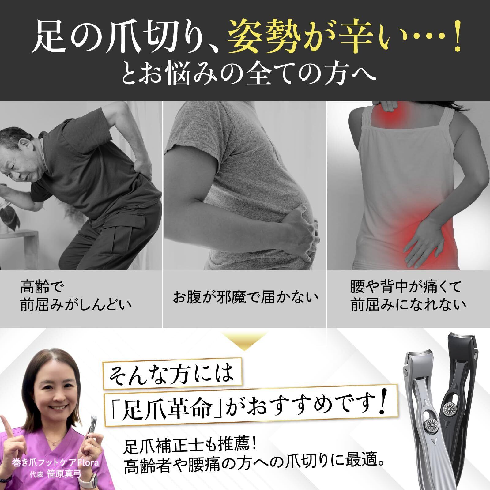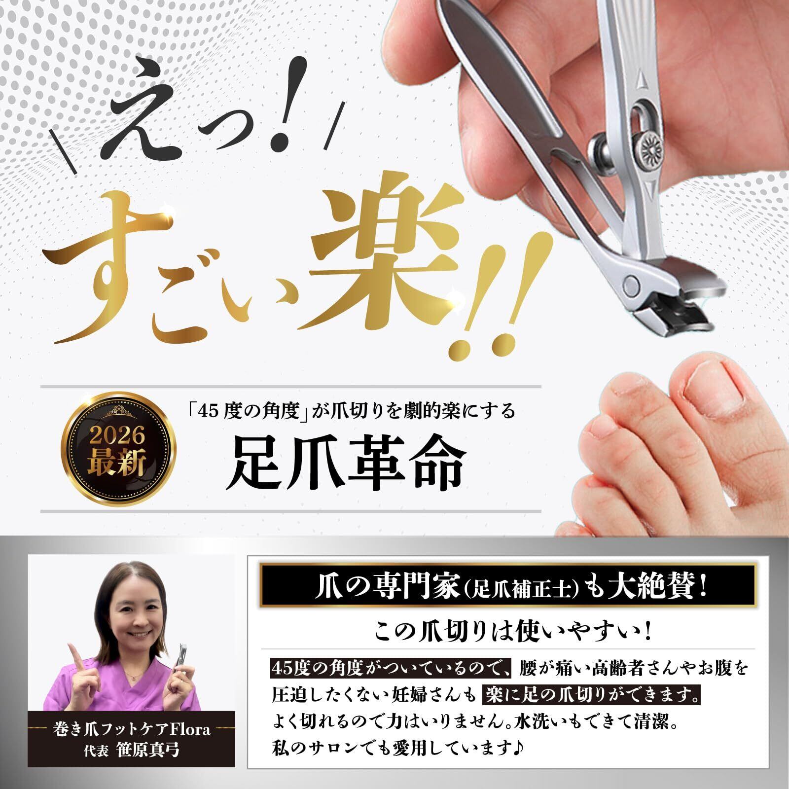 「45度の角度」が爪切りを劇的に楽にする 足用爪切り「足爪革命」誰にでも簡単キレイにカット出来る爪 切りニッパーです。