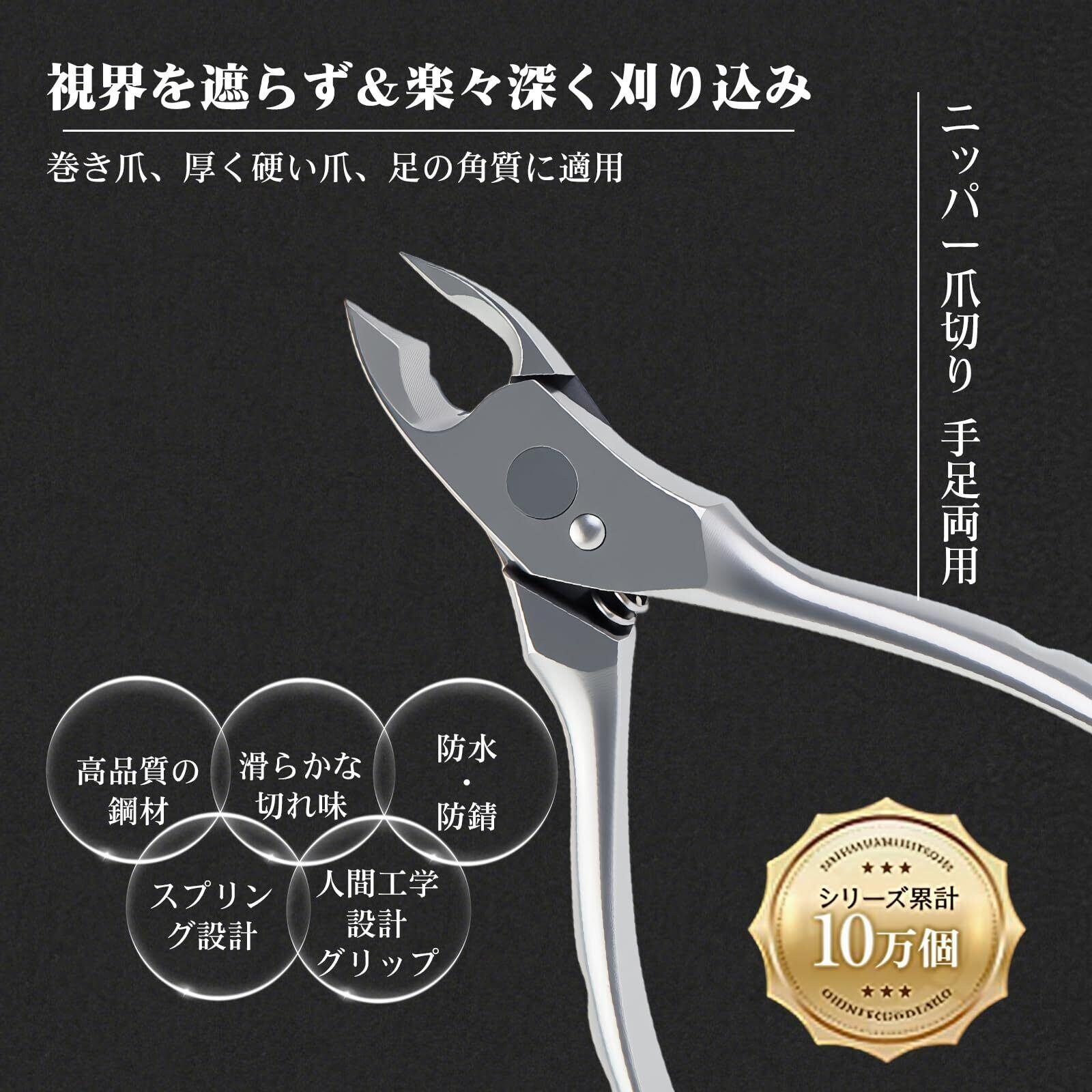 【2022最新】爪切り ニッパー【ストレスフリーな切れ心地】巻き爪・肥厚爪・陥入爪対応 甘皮ケア 高硬度ステンレス カーブ刃 鋭い切れ味 防水 ネイルケア 手足兼用