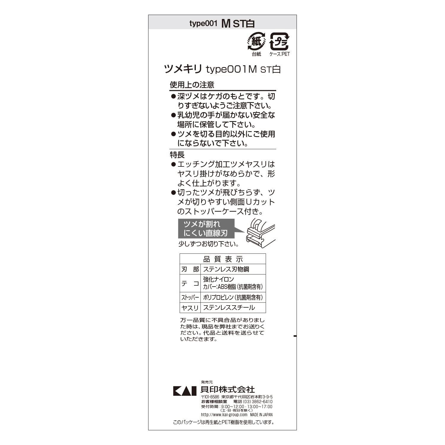貝印 KAI 爪切り Type001 M ST 白 直線刃 日本製 KE0116