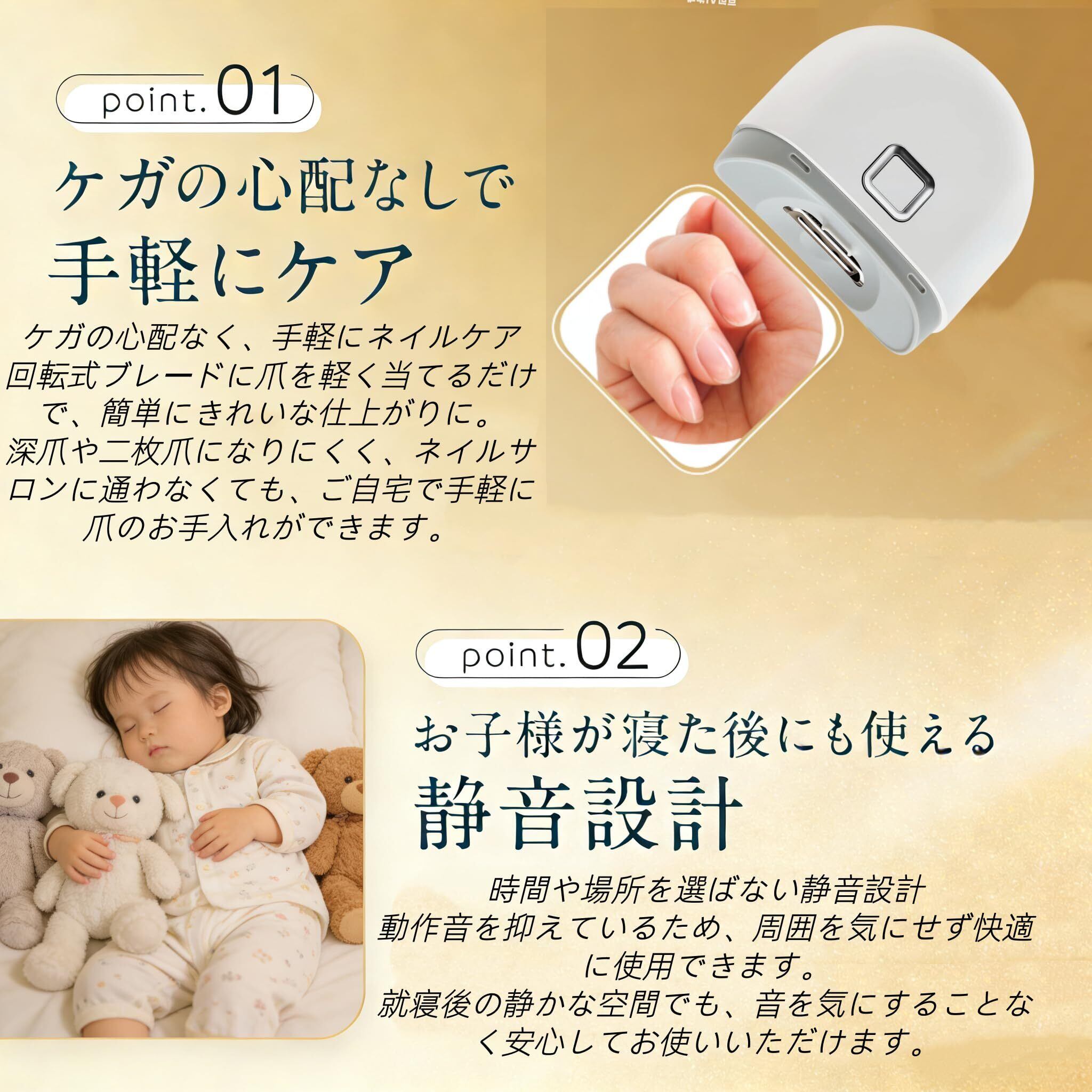【在庫セール】【2026年業界最新】電動爪切り 自動爪切り つめきり 電動爪やすり 二段階スピードType-C充電式 LEDライト付き ワンボタン操作 電動爪削り 超軽量 操作簡単 低騒音設計 赤ちゃん 子供用爪磨き 介護用 高齢者に向け 視力障害