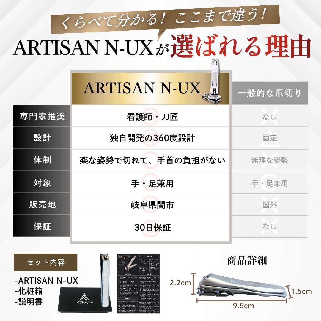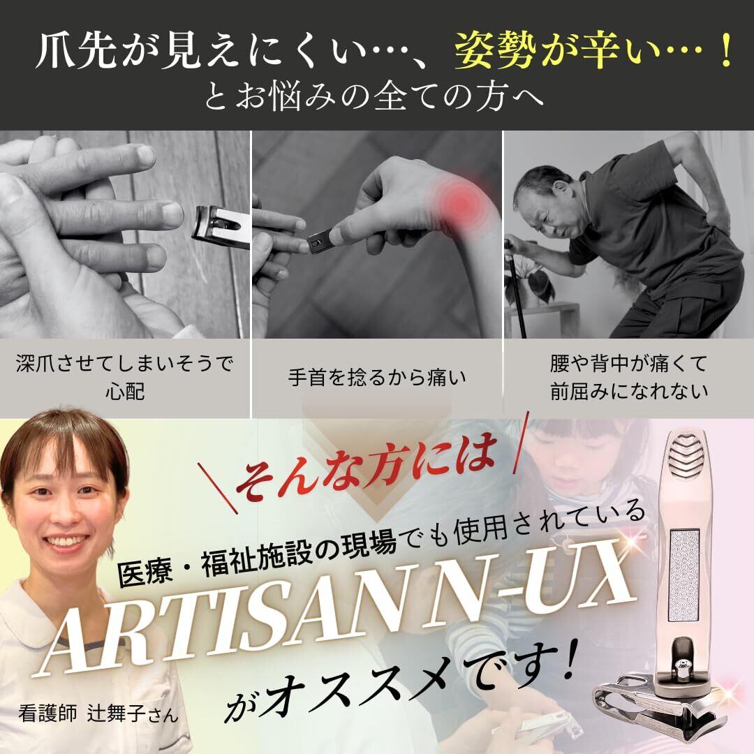 【人気商品】【刀匠&看護師推薦】ARTISAN N-UX 正規品 爪切り 匠の技 岐阜県関市 回転式 5階角度調整で手元が見える 高齢者 介護 妊婦さん 水洗い可