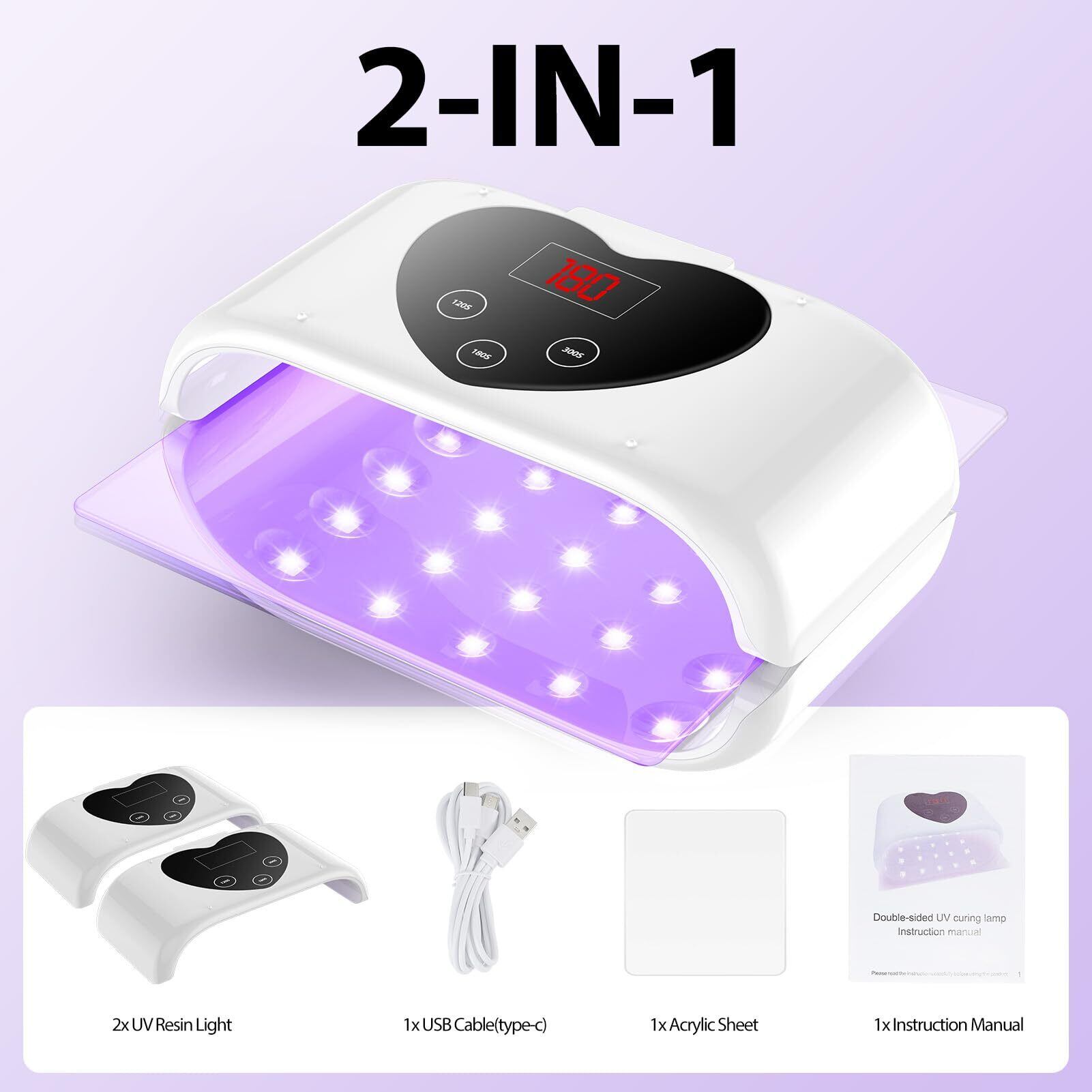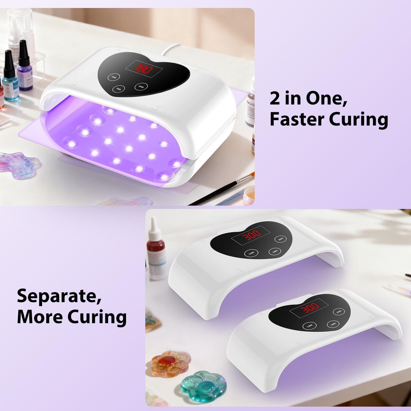 UVライト レジン用、両面UVレジンランプ 大型UVレジンライト LEDディスプレイ付き(長時間設定 2分、3分、5分)レジン硬化、型、ジュエリー制作、DIYクラフト用 (40球)