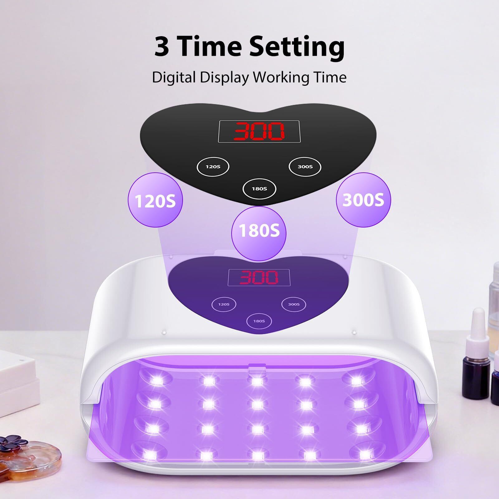 多機能タイマー & LEDディスプレイ: 2分、3分、5分の延長硬化時間から簡単に選択できます。直感的なデジタルディスプレイにより、設定を監視し、正確な硬化のために調整が可能で、頻繁なリセットが不要です。これは、uv ledライト レジン用としても最適です