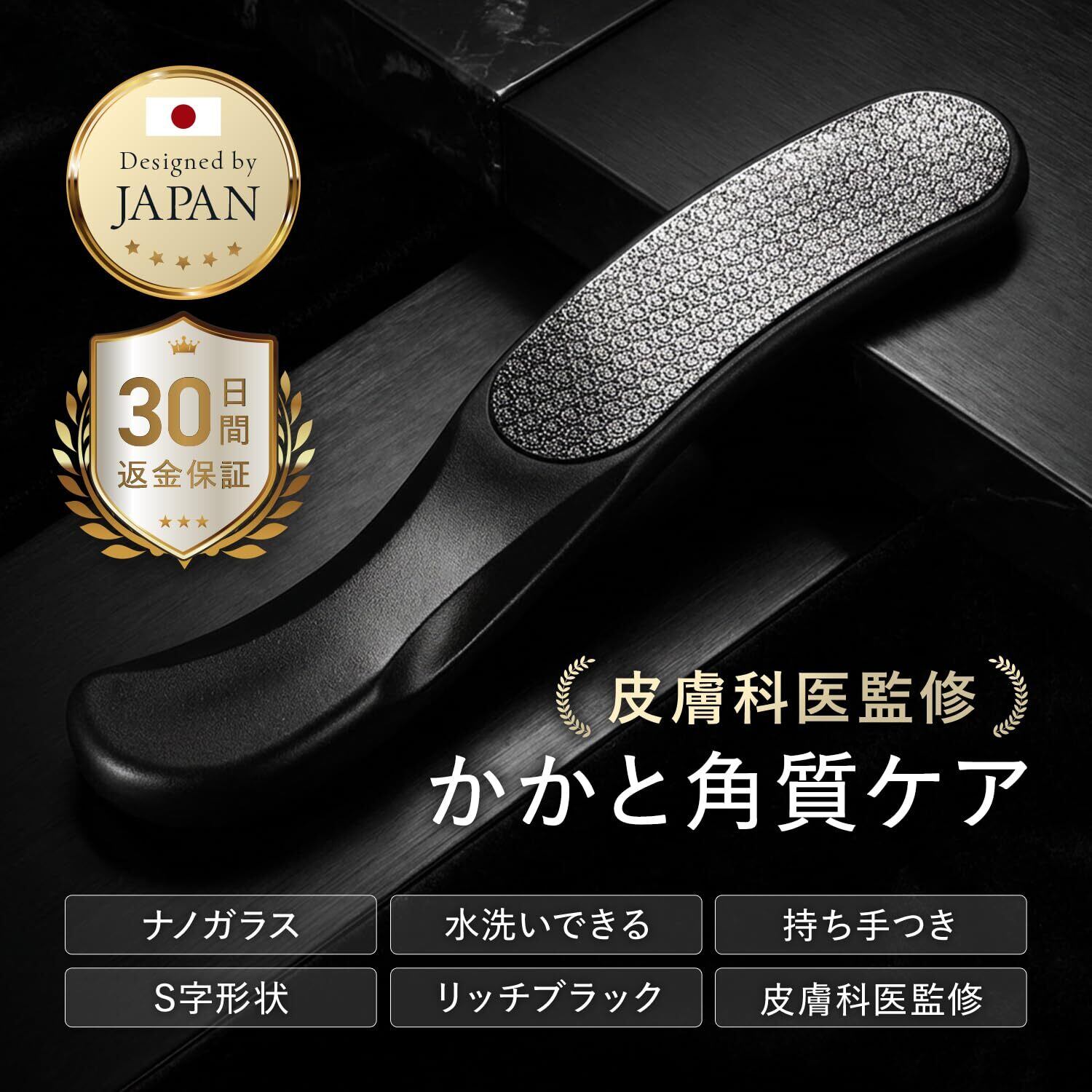 かかとやすり かかと ヤスリ 足裏 角質ケア 角質除去 フットケア ナノガラス ガラスやすり かかとケア 皮膚科医監修 水洗い可能 持ち手付き S字形状 自宅ケア 角質ケアグッズ フットケア用品