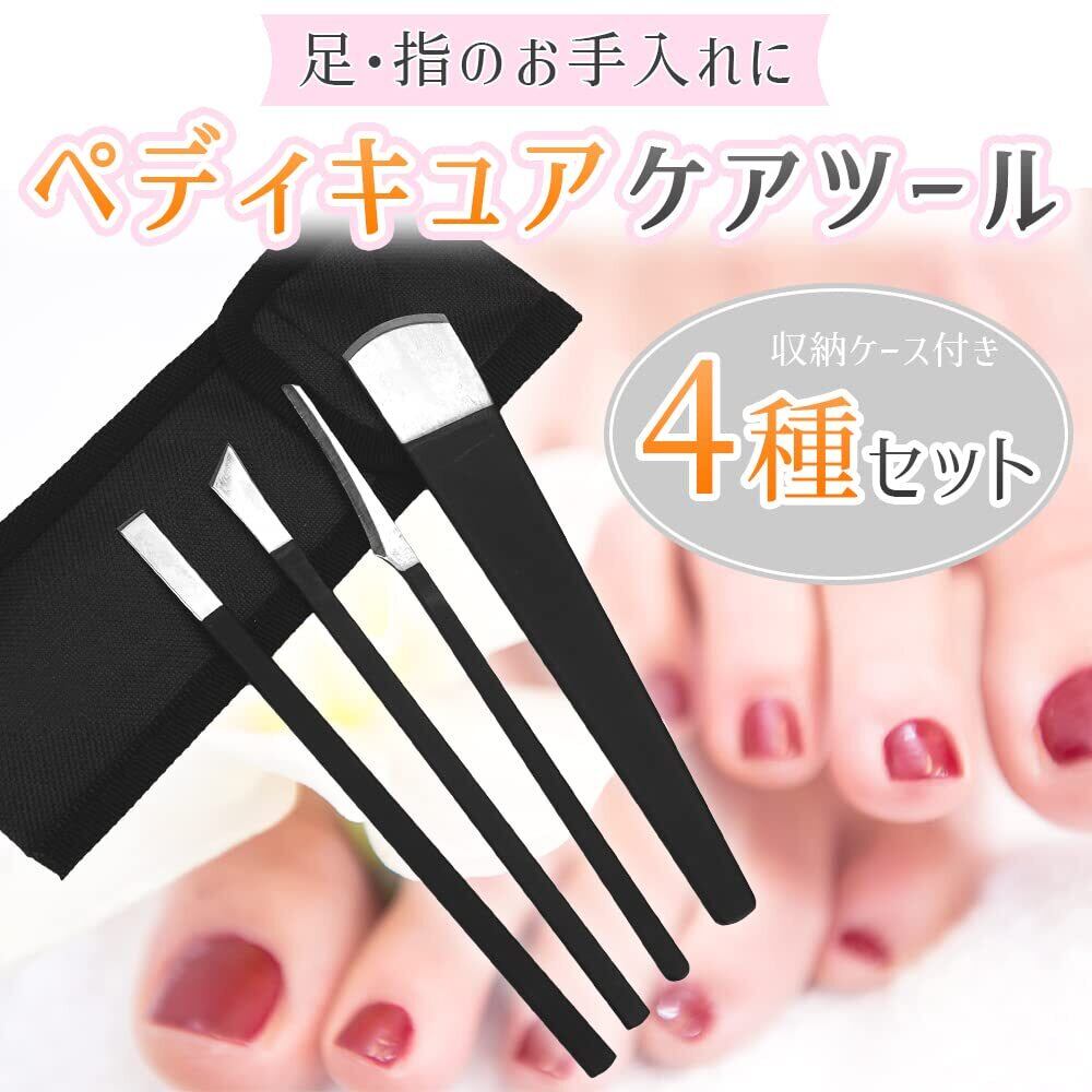 [T&T PRODUCT'S] フットケアグッズ 足 かかと 爪 ステンレス製 ケアツール ナイフキット 4種類 滑りにくい 収納袋付属