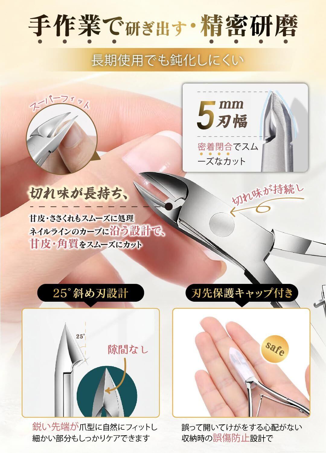 キューティクルニッパー 【甘皮処理 ネイルニッパー】 甘皮 ニッパー爪切り ネイルケア 甘皮ケア 爪 手指 ケア セルフ プッシャー付き キューティクル キューティクル ツール 付属 レザーケース