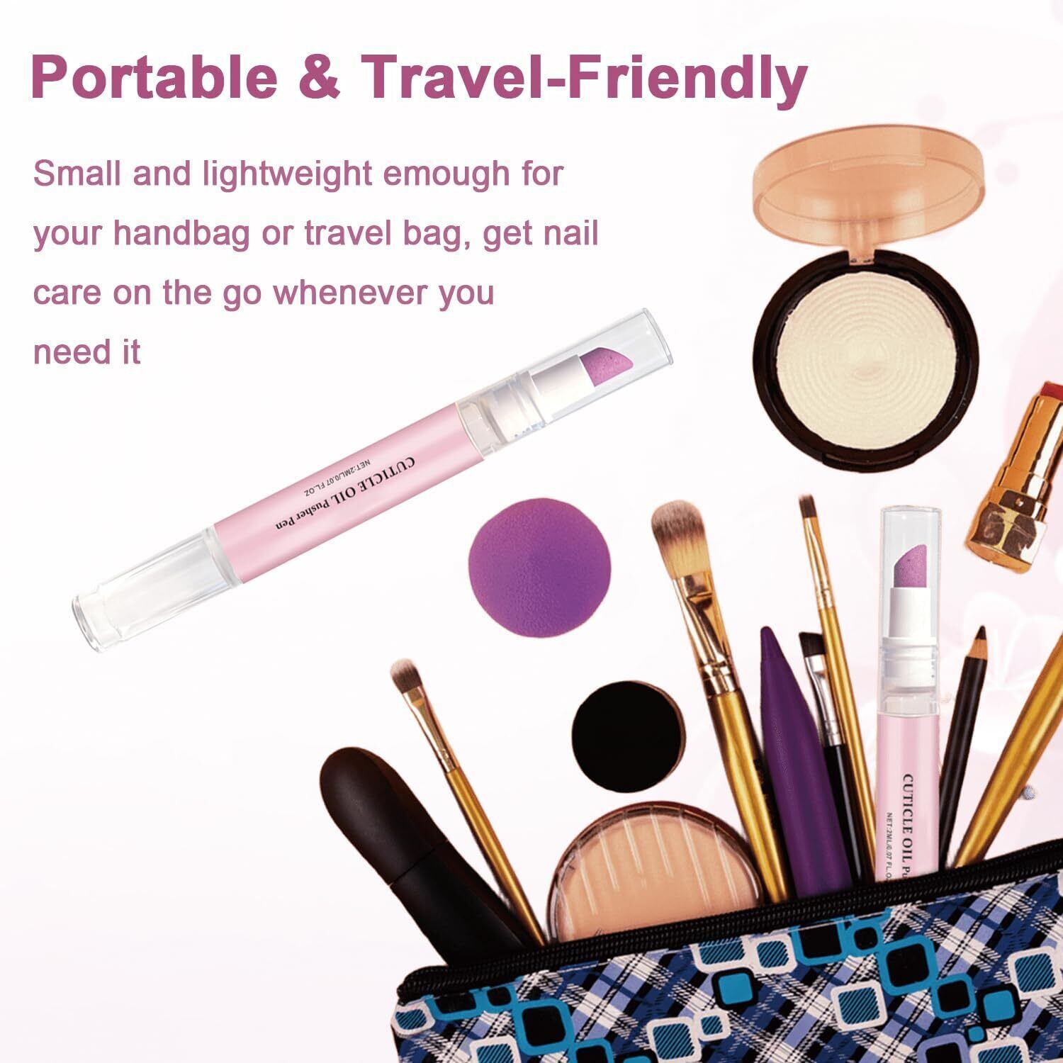 【2-in-1ネイルケアの利便性】キューティクルプッシャーとオイルペンを1つのポータブルデザインに統合し、効率的にネイルケアを実現します。キューティクルクレンジングとオイリングを簡単に交換して、ワンステップで爪を維持し明るい状態に保ちます。
