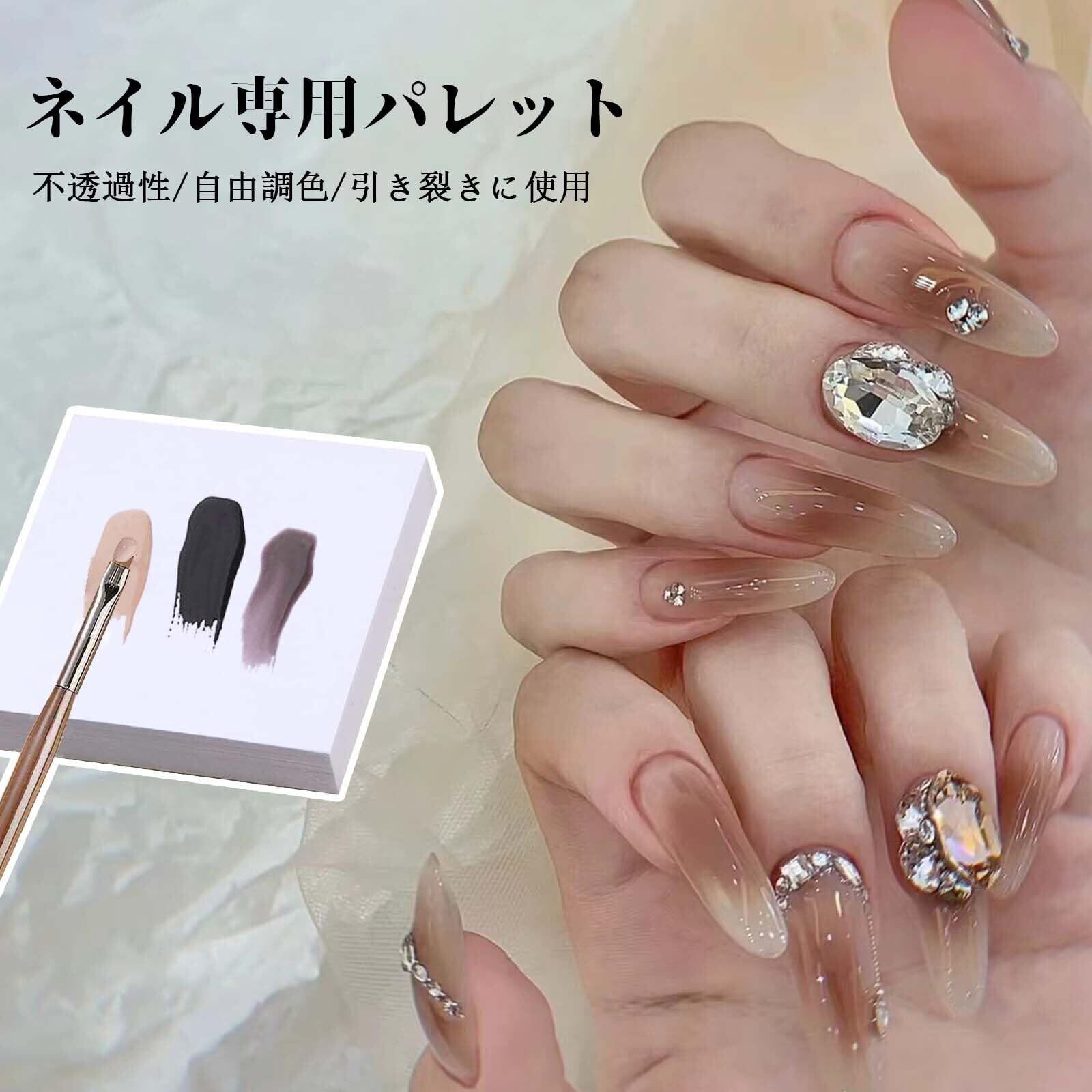 ネイルパレット ネイルアートパレット 50枚 ネイル用パレットペーパー 両面使用 使い捨てペーパーパレット 剥離可能 携帯用 ネイル用品 先丸ブラシ1本付き