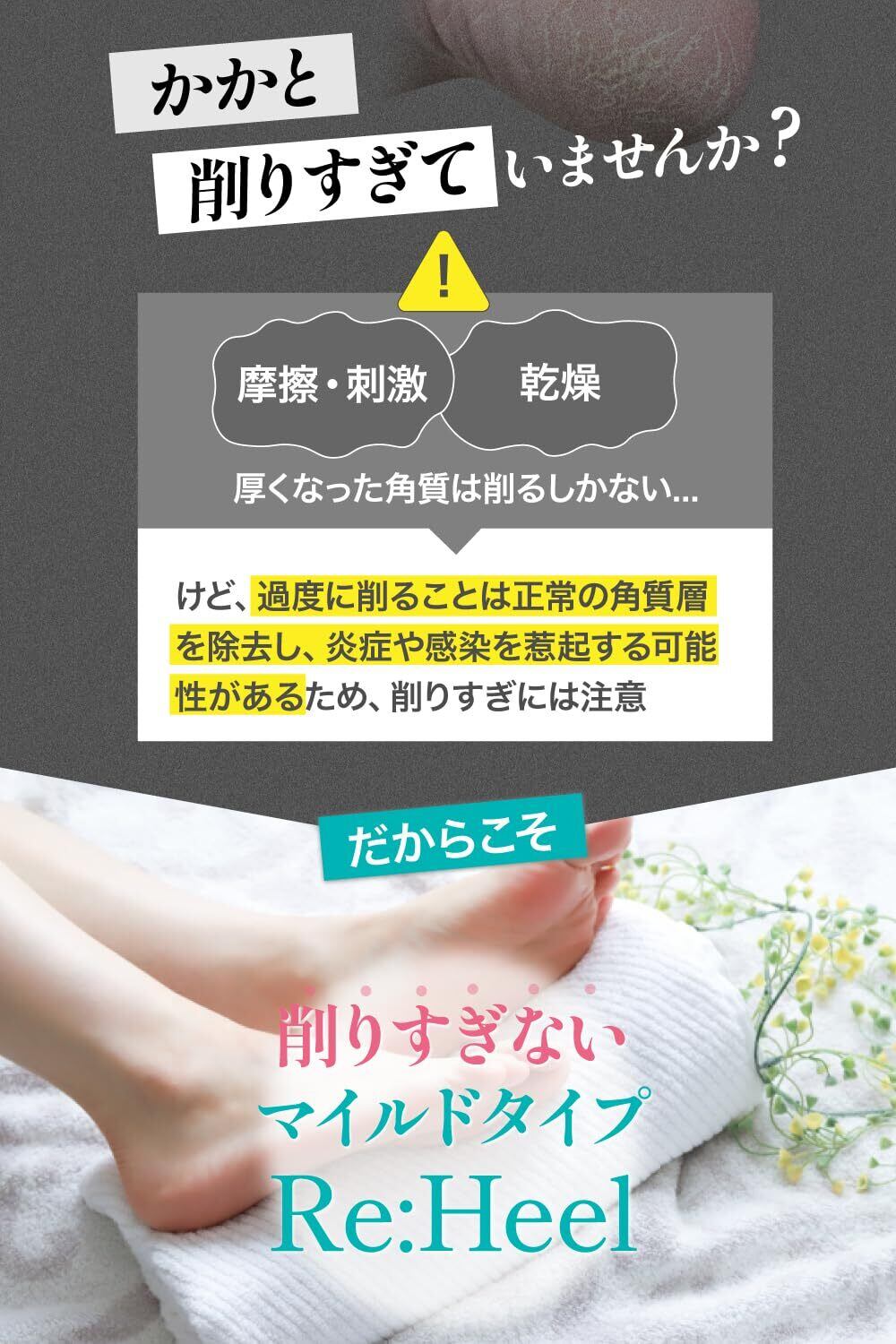 【美容皮膚科医推奨のマイルドケア】 削りすぎると皮膚の保護層が傷つき、乾燥・角質肥厚の悪循環に。Re:Heelは医師監修のもと、バリア機能を守るやさしいケアを実現しました。削るたびに素足が柔らかく整います。