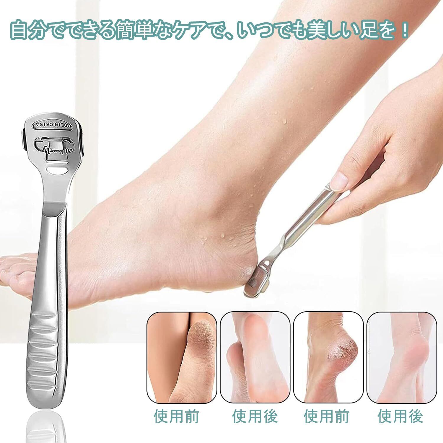 【仕様】本製品には、やすり1本、角質カッター1本、そして交換用ブレード10枚が含まれており、あなたの日常の足のケアニーズを満たすことができます。
