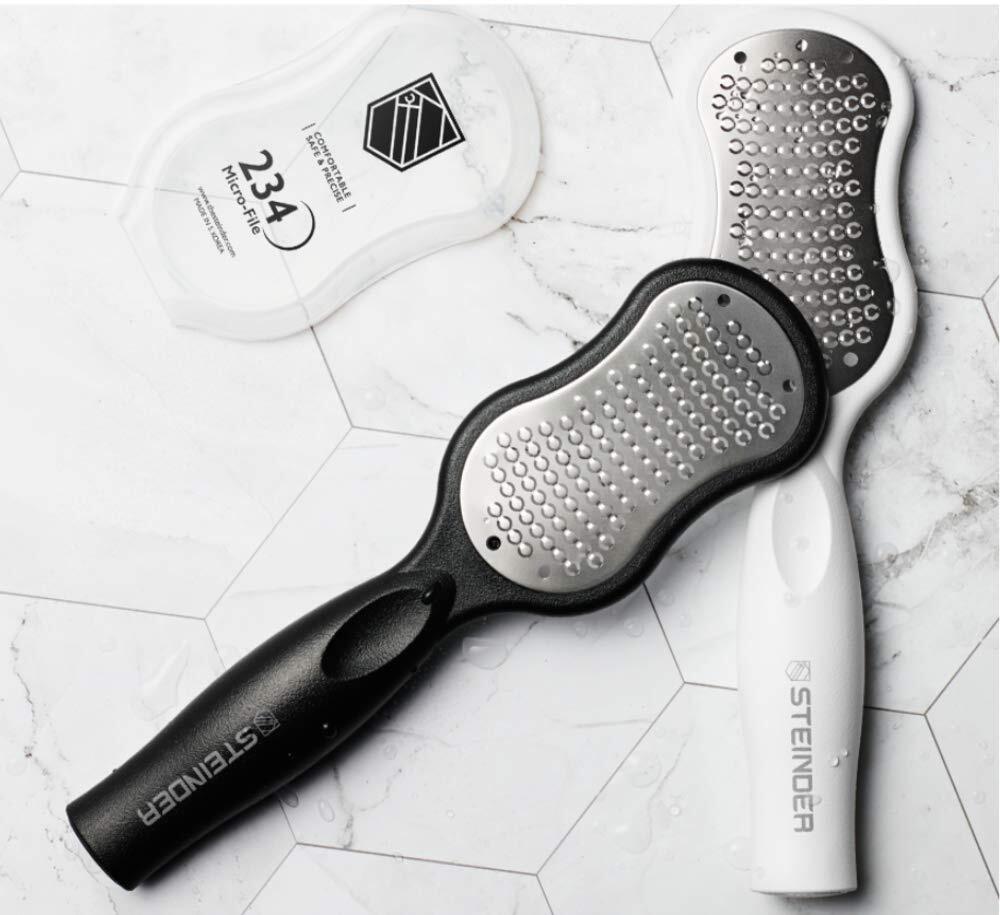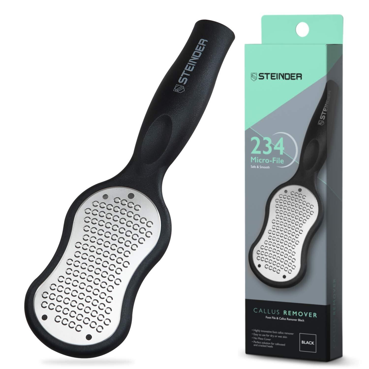 【特価商品】かかとやすり フットファイル角質リムーバー Steinder かかと角質取り かかと削り マイクロカッター 丸洗いOK 乾湿足用 カバー付き 安全 衛生 かかときれい ブラック ラージサイズ (大)