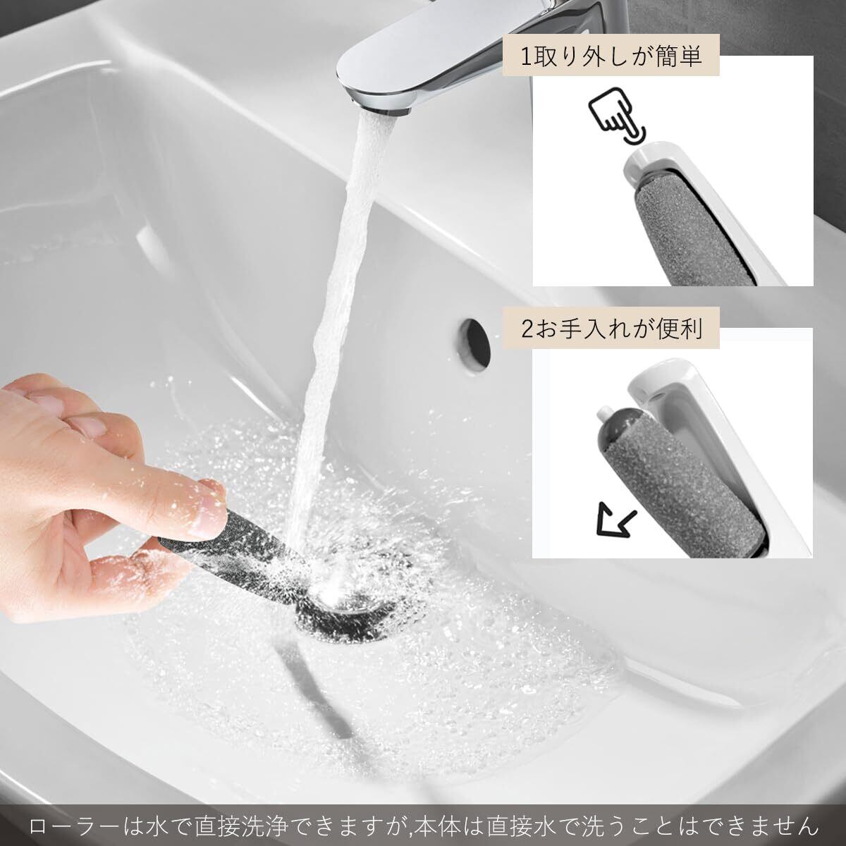 【コンパクト電動角質リムーバー】ローラーヘッドが電動で回転し、足裏全体の硬い角質を強力に除去できる電動角質リムーバー。USBワイヤレス操作機能を搭載しています。これにより、手軽にどこでもスムーズな操作が可能になり、ケアの時間をもっと楽しんでいただけます。