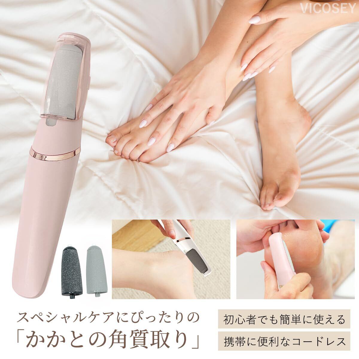 【2段階スピード&2種類のローラー】Vicosey電動角質リムーバーは、強力なモーターで2段階のスピード調整が可能です。古い角質を効果的に除去し、ソフトで滑らかなかかとに。低速モードは温和に敏感肌と薄い角質を除去し、高速モードは厚くて硬い角質をリムーブします。かかとや角質の状態に合わせて、簡単にローラーを交換できます。