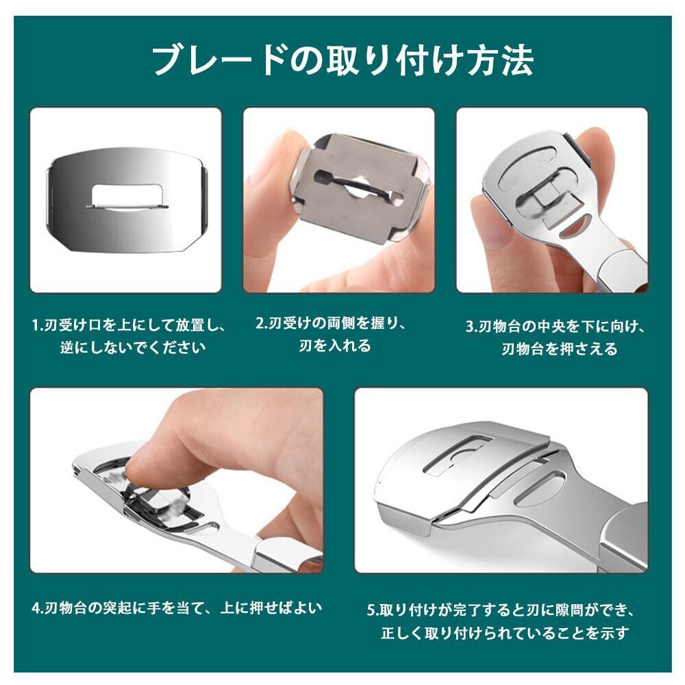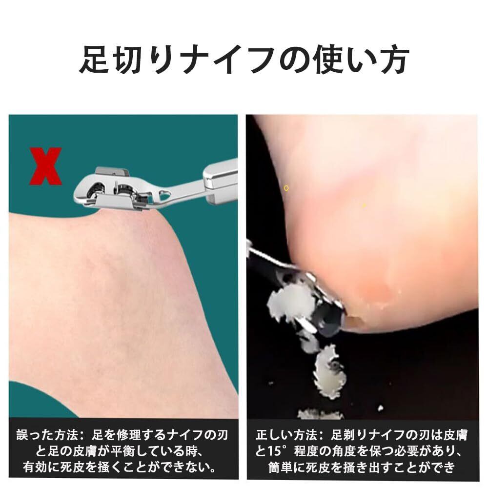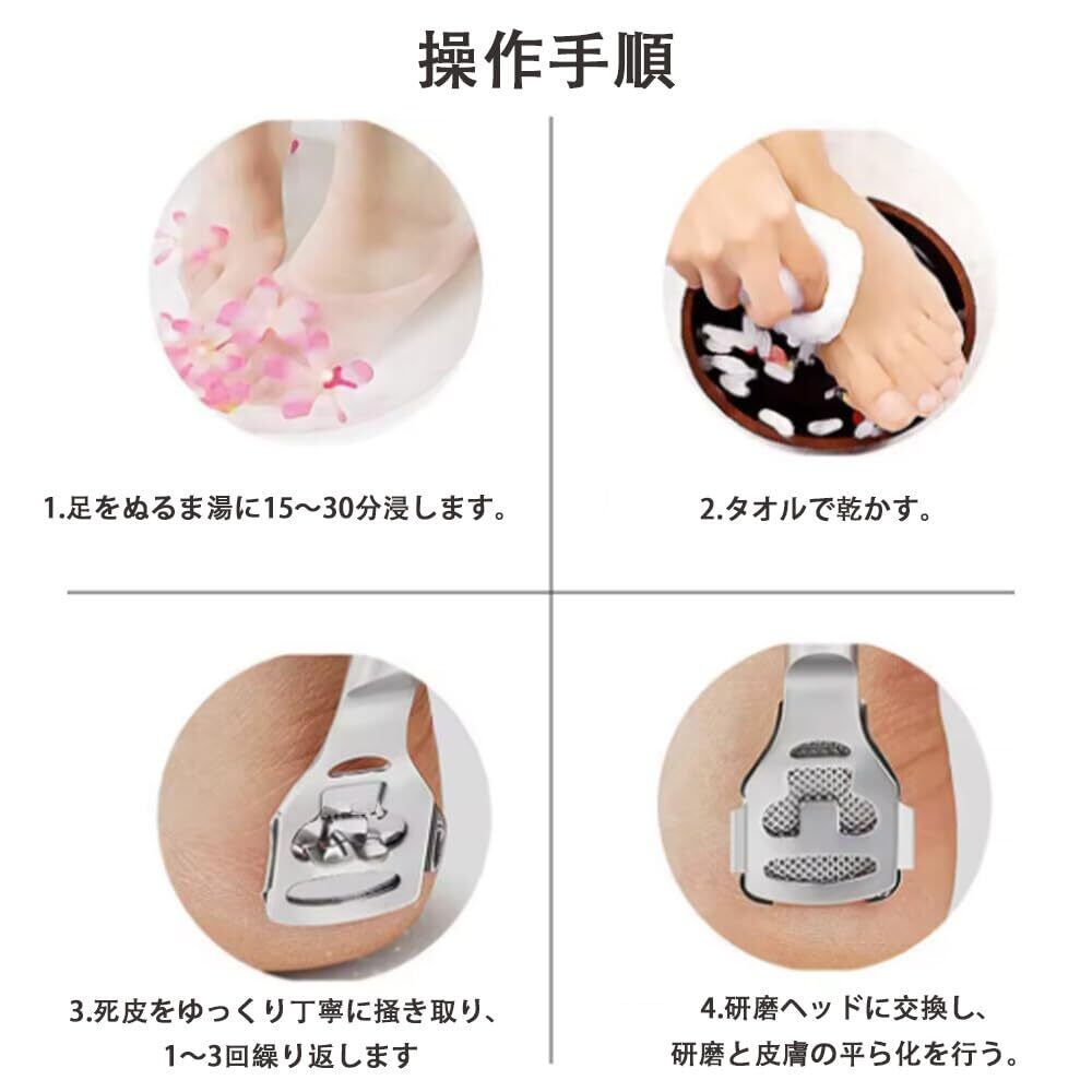 1【足裏の角質を徹底除去するプロ用フットケアツールセット】足の角質・タコ・魚の目を簡単に削り落とすフットケアツール4点セットです。仮木目調の削り器、替刃付きの角質リムーバー、ステンレス製ファイルなど、毎日のかかとケアに最適です。 2【高品質ステンレス素材で錆びにくく長持ち】耐久性の高いステンレス鋼を使用しており、錆びにくく清潔に使えます。硬くなった足裏の角質も力を入れずにスムーズに削れるので、家庭でもサロン級の仕上がりに。 3【コンパクトな収納ケース付きで持ち運びに便利】高級感のある銀色の鉄製収納ケースに収められており、自宅での保管にも旅行時の携帯にも便利です。外出先でも手軽に足の手入れが可能です。 4【古い角質やひび割れをケアして、すべすべの素足に】厚い角質、ガサガサしたかかと、ひび割れた足裏をなめらかに整え、美しい足元へ導きます。自宅でセルフケアしながら、つるつるの素足を目指せます。 5【ご使用後のお手入れも簡単で衛生的】使用後はブレードをアルコールで拭き取り、もしくは水洗い後に乾いた布で拭いてください。お手入れが簡単なので、毎日衛生的にお使いいただけます。
