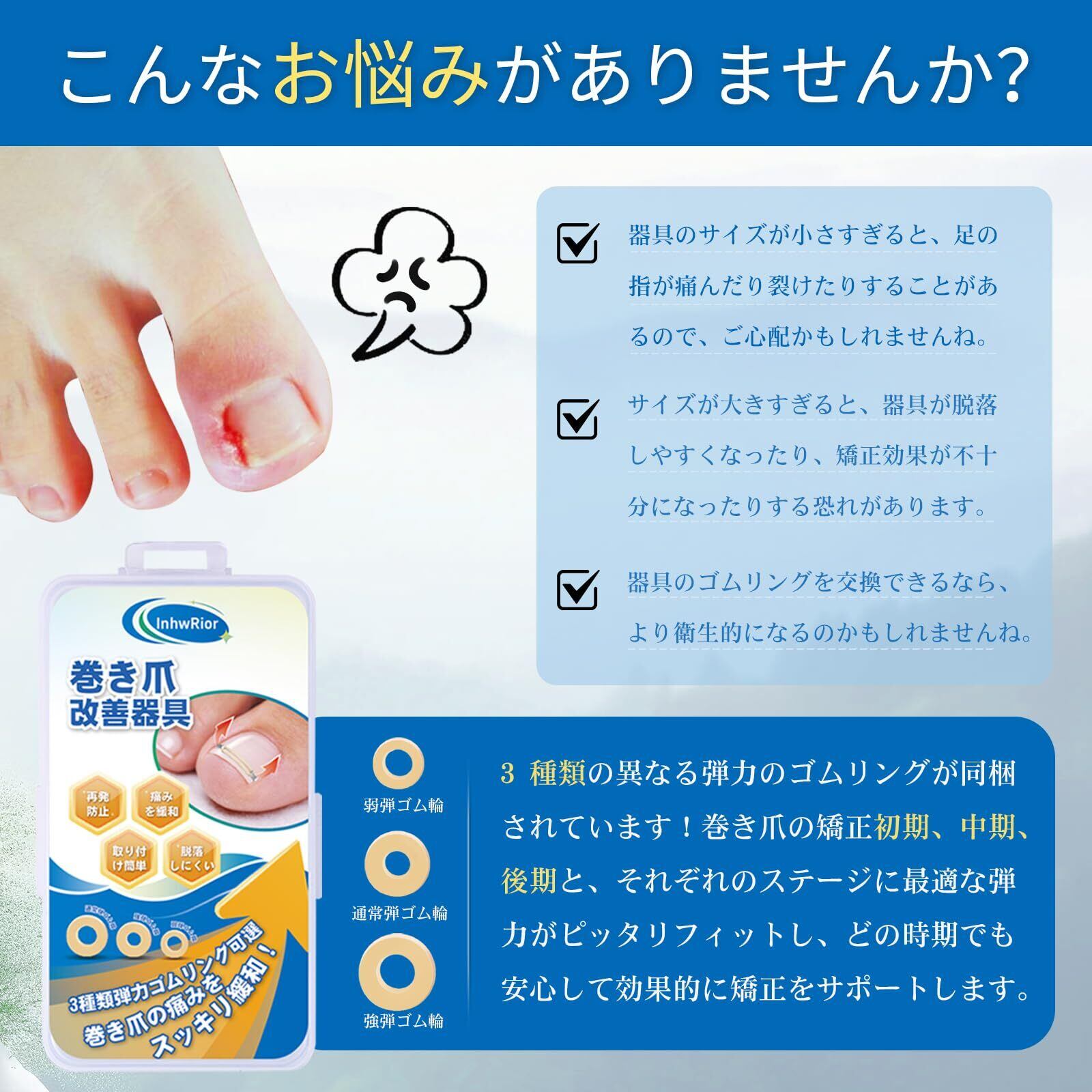 InhwRior 巻き爪改善器具 着脱自在 ゴム交換簡単 3 種類弾力ゴムリング搭載 サイズ選び不要 清潔が簡単 自宅で手軽に装着 嵌甲の痛み緩和 再発防止