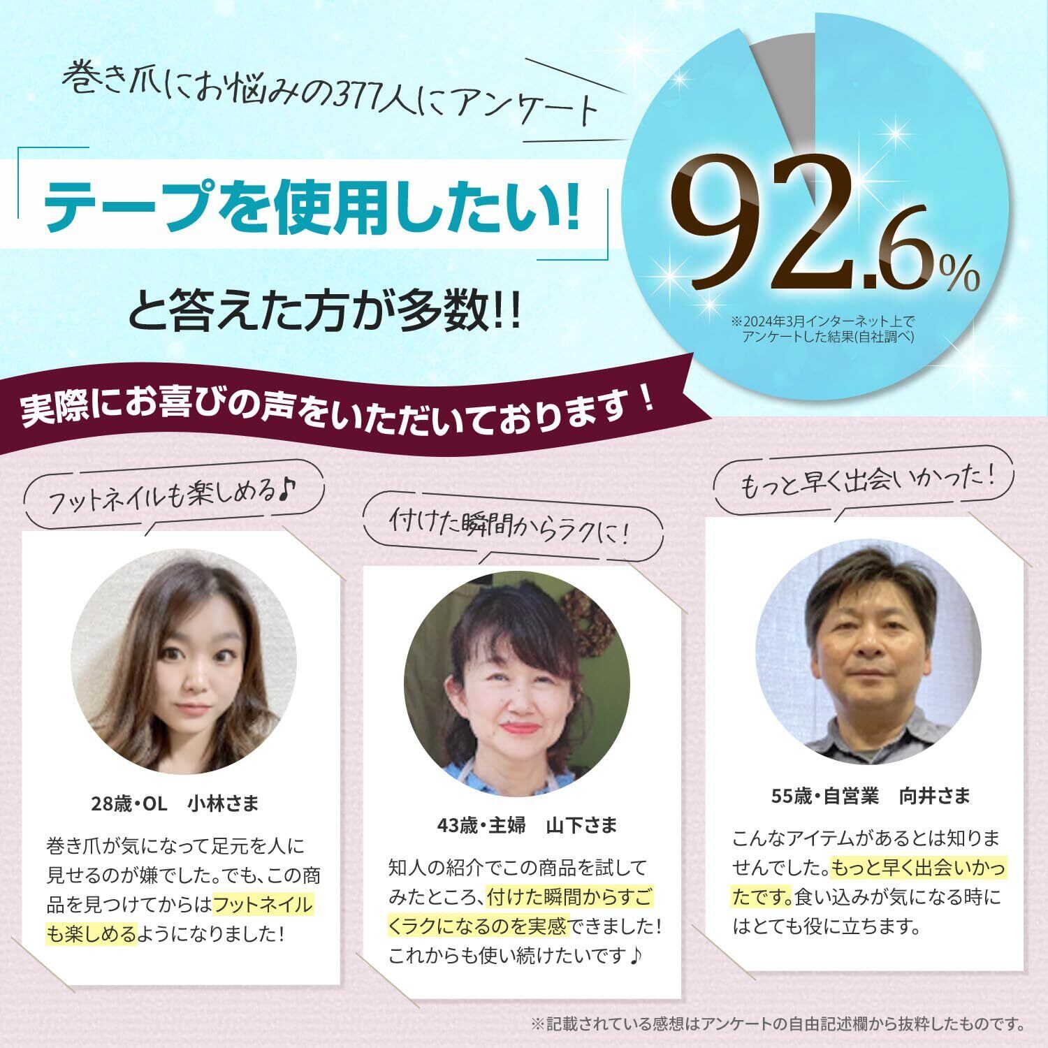 【巻き爪のプロ監修】累計3万人の施術実績のある巻き爪専門院「東京巻き爪センター」の院長が監修した自信作。【こだわりの曲面形状】研究を重ねてたどり着いた”足指にフィットする形”により剥がれにくさを実現。靴下の中でもご使用いただけます。