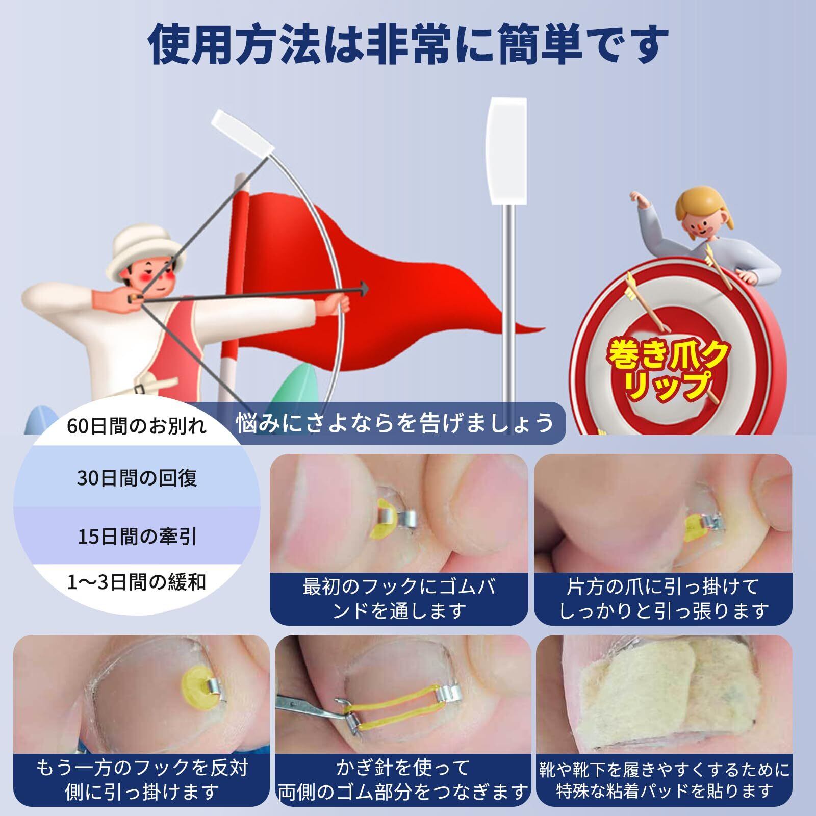 巻き爪クリップ フックアクセサリー 2個入り+かぎ針 *1個入り+粘着テープ *4個入り+ゴムパーツ*20個入り 大部分の巻き爪 高耐久性 繰り返し使用可能 着脱自在 ゴム交換簡単 清潔が簡単 歩く方が便利 使いやすい 自宅で手軽に装着 男女兼用 (1)