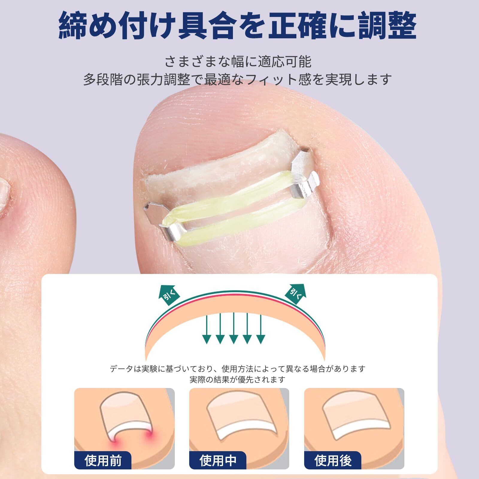 【製品原理】 本製品は、補助器具を使用して陥入爪を優しく上方に引っ張り、爪が自然な方向と形状に沿って成長できるようにします。