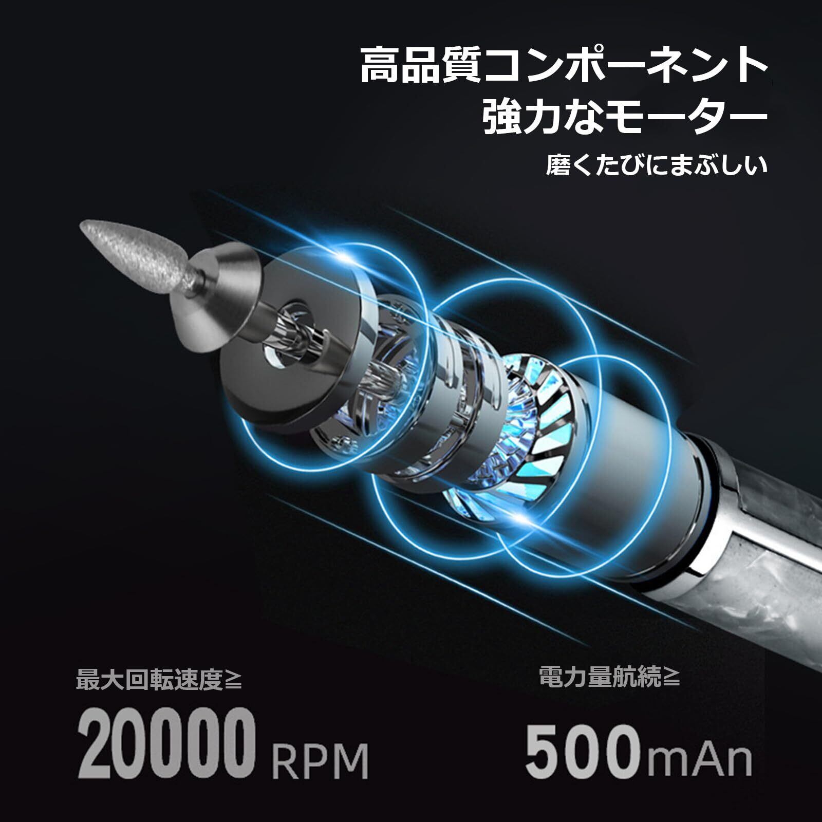 大容量リチウム電池:電動ネイルファイルは充電式設計で、耐久性のあるパフォーマンスを保証する大容量リチウム電池を備えています。簡単に充電でき、長時間のマニキュアセッションをお楽しみいただけます。