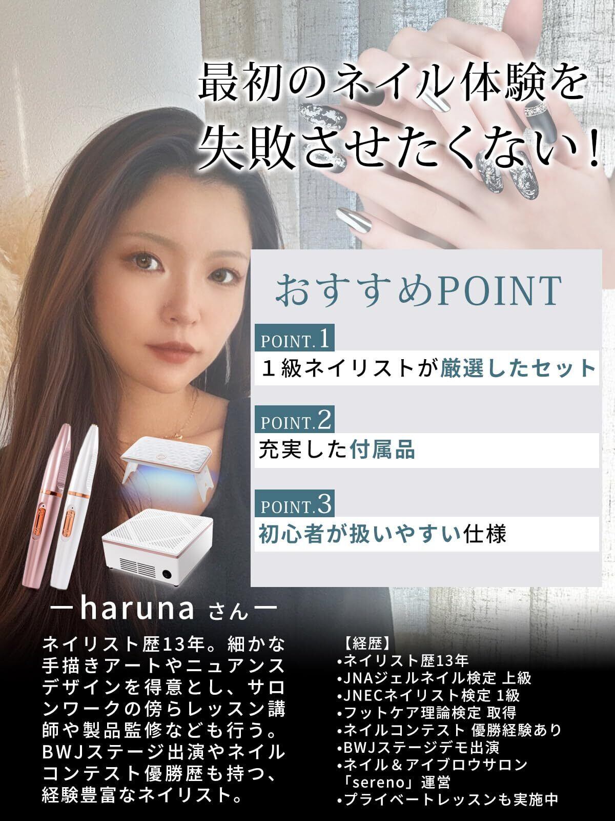 【現役1級ネイリストがセルフネイル始めたい人のために監修】 ネイルマシン コードレス 集塵機 ネイルライト 初心者用3点セット『届いたその日から始められる』 (ホワイト)