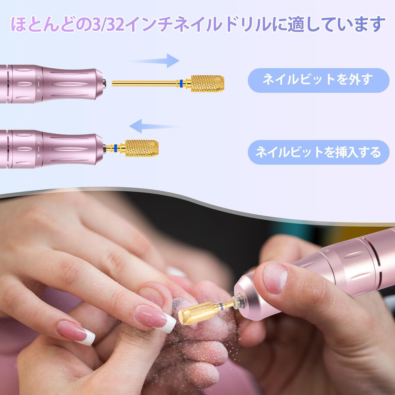 ユニバーサル3/32インチネイルビット: 軸径 2.35mmインチネイルドリルビットは、ほとんどの電動または充電式マニキュアやすり機に適合します。 ネイルサロン、美容院、スパ、パーソナルマニキュアペディキュア、ご自宅でのDIYネイルアートに最適です。